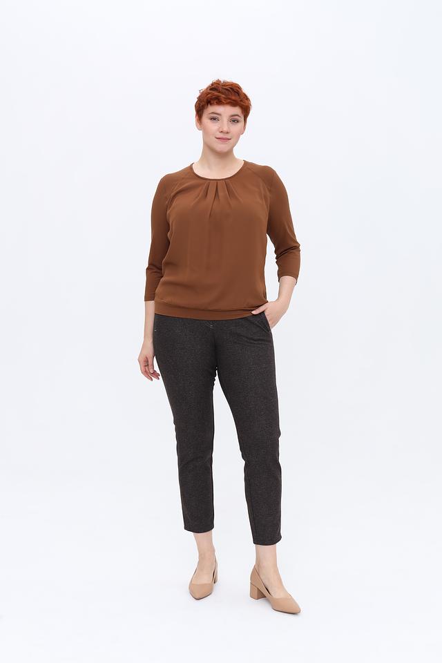Состав ткани: 68% полиэстер, 26% вискоза, 6% эластан. Такой состав обеспечивает приятные тактильные ощущения, хорошую износостойкость и лёгкость в уходе. Брюки отлично подойдут для создания повседневных образов.