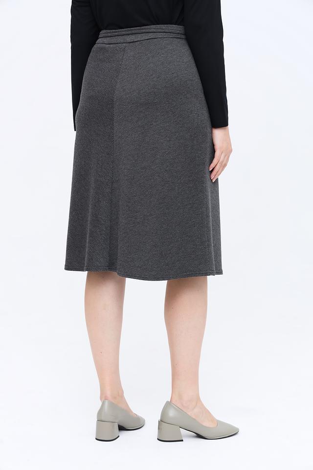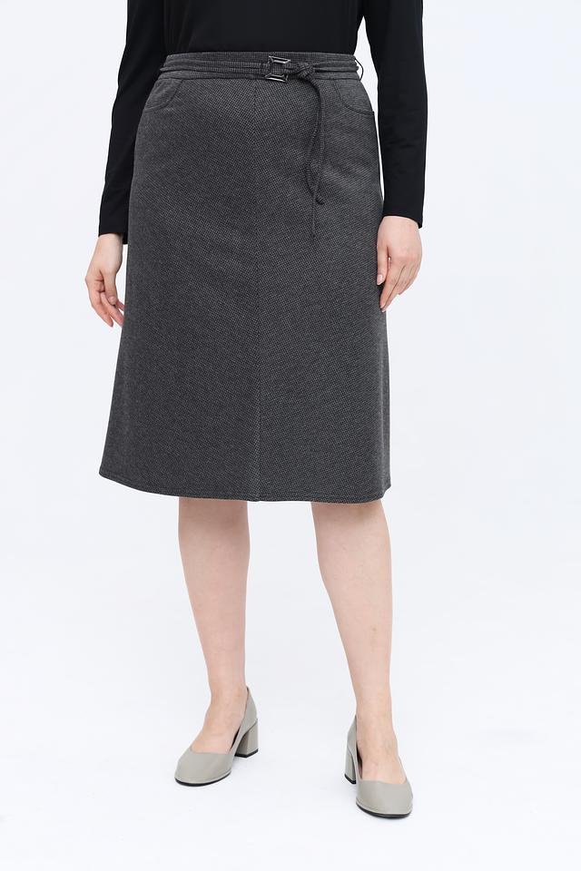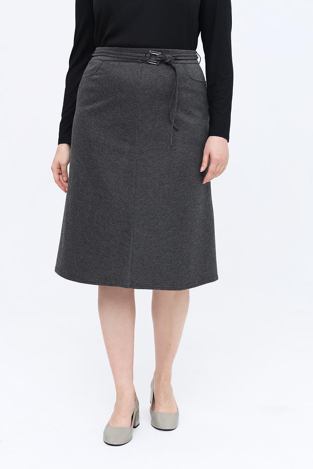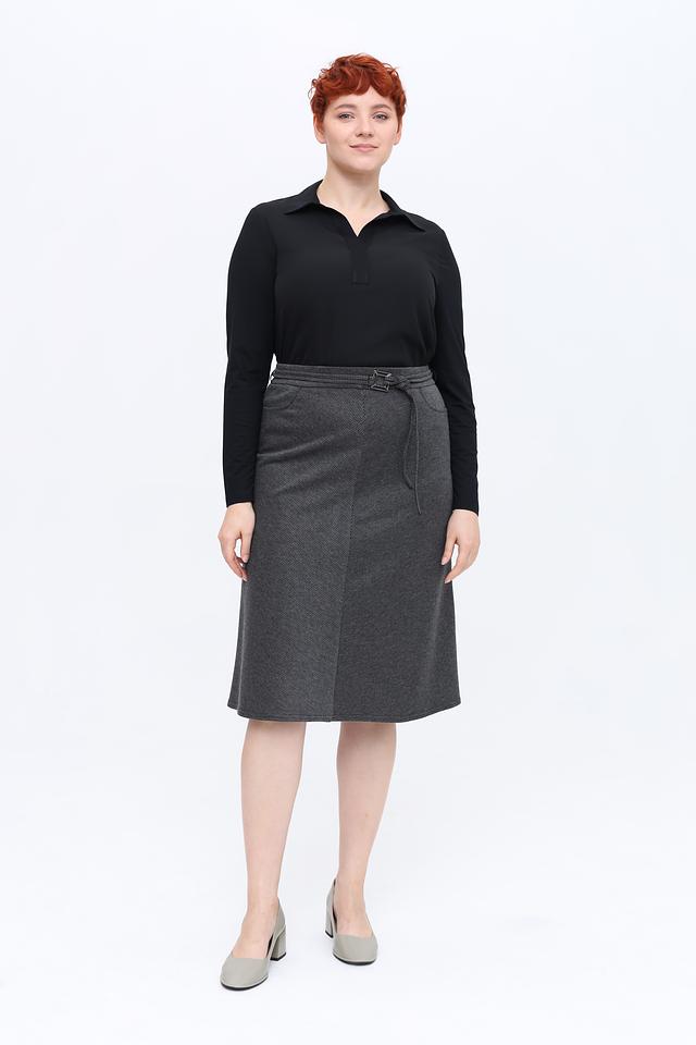 Модель имеет длину миди и удобный пояс на резинке с завязками, что обеспечивает комфортную посадку по фигуре. Запах добавляет юбке изысканности и позволяет создавать различные силуэты.