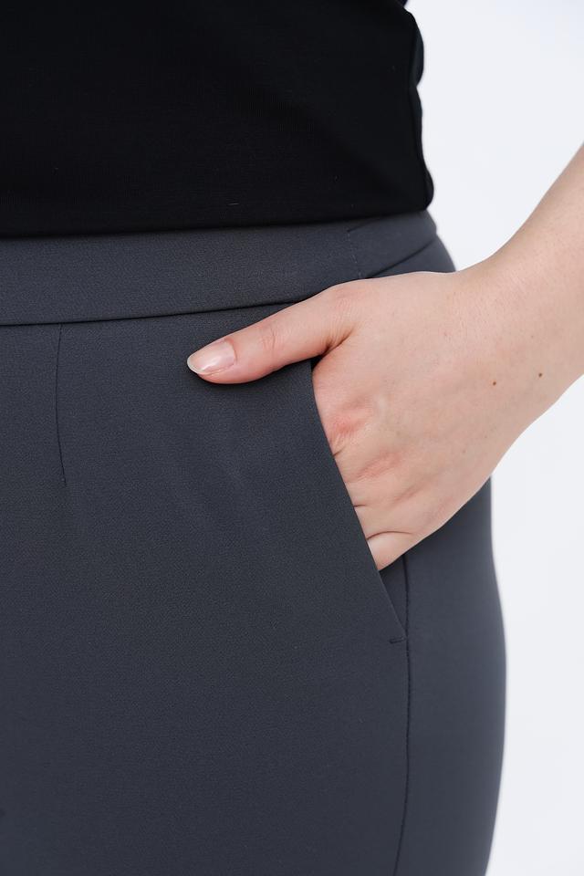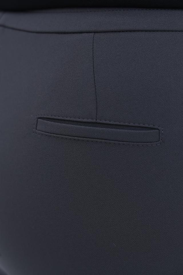 Брюки имеют прямой крой и слегка зауженный силуэт к низу, что делает их подходящими для различных типов фигуры. Эластичный пояс обеспечивает удобную посадку и не сковывает движения. Ткань, состоящая из полиэстера и эластана, приятна на ощупь и хорошо держит форму.