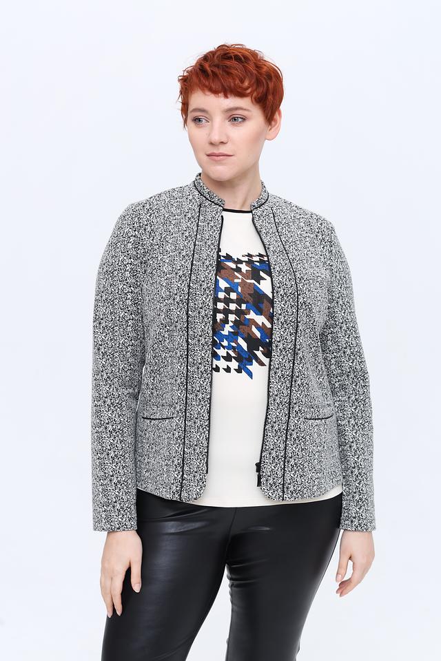 Состав ткани: 80% полиэстер, 18% вискоза, 2% эластан. Этот состав обеспечивает комфорт в носке и легкость ухода за изделием. Жакет идеально сочетается с брюками, юбками и платьями, позволяя создавать как деловые, так и повседневные образы.