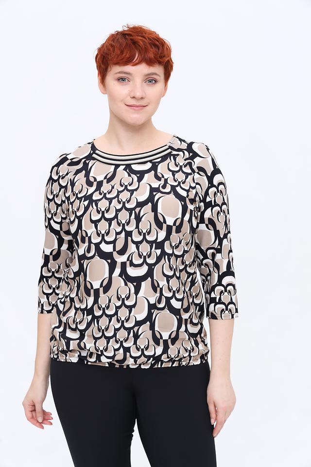 Женский лонгслив Frank Walder чёрно-бежевого цвета с оригинальным геометрическим принтом. Модель выполнена из мягкой вискозы с добавлением эластана, обеспечивающего комфортную посадку по фигуре. Состав: вискоза 96%, эластан 4%