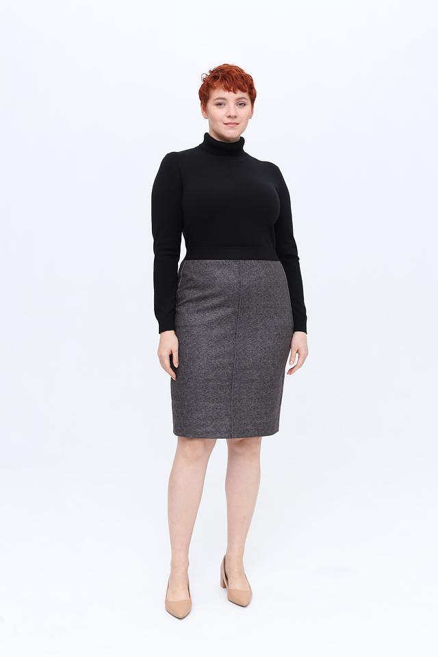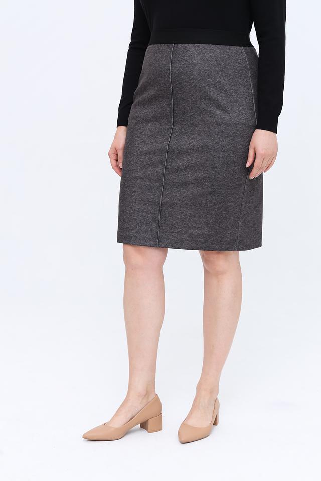 Юбка имеет приталенный силуэт, который подчеркивает фигуру, и длину до колена. Текстурированная ткань придает изделию особый шарм, а добавление вискозы и эластана обеспечивает комфорт в носке и хорошую посадку по фигуре.