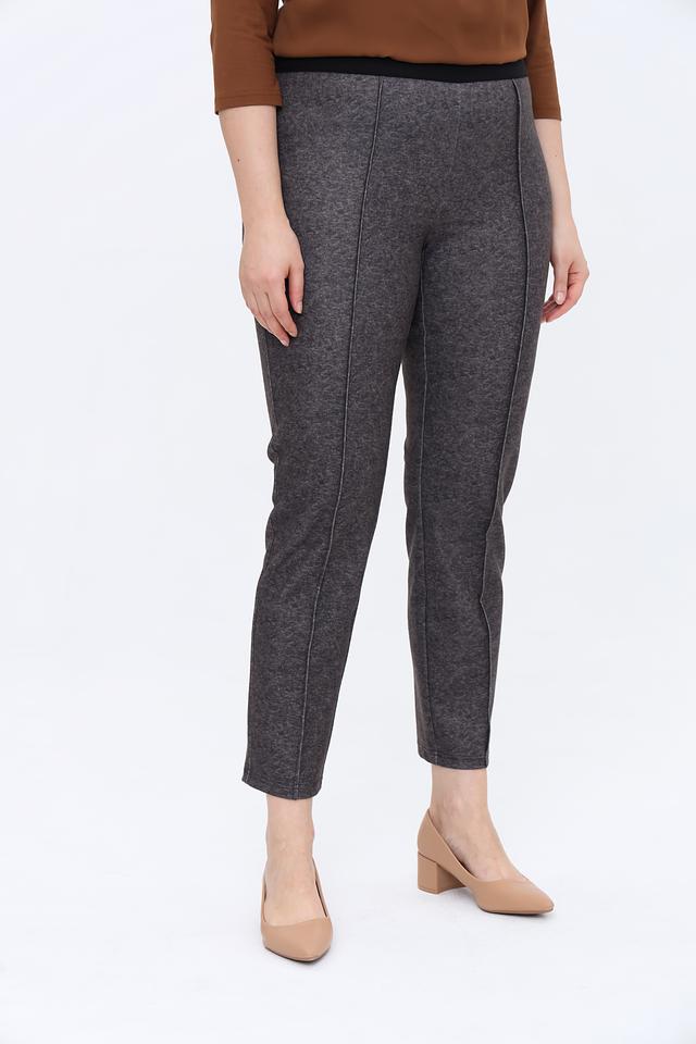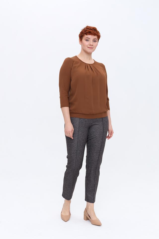 Брюки имеют прямой крой и стандартную посадку по фигуре. Отличительной особенностью являются вертикальные декоративные швы, которые визуально вытягивают силуэт и придают брюкам изысканный вид. Эластичный пояс обеспечивает удобную посадку и не сковывает движения.