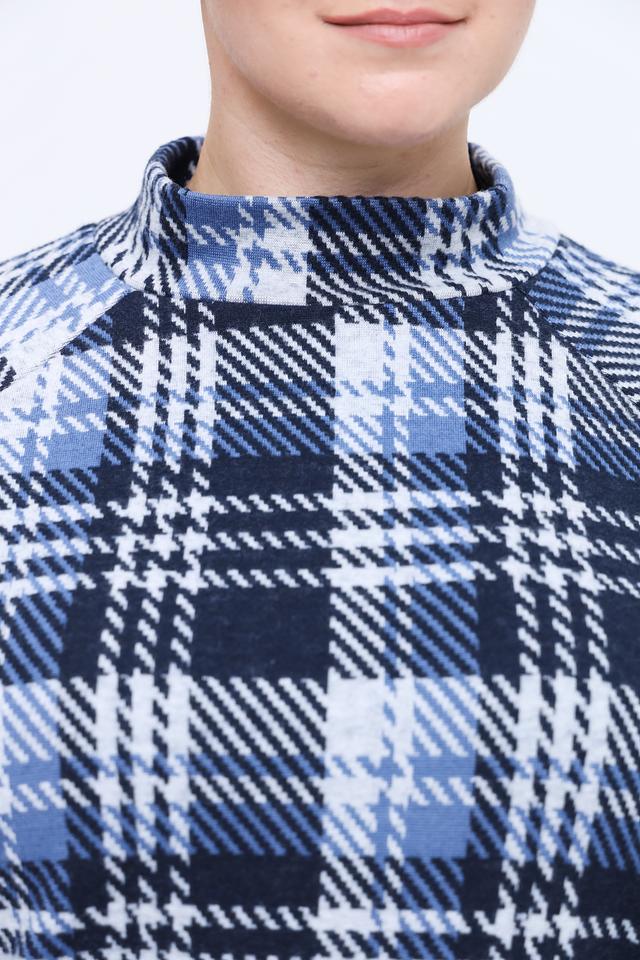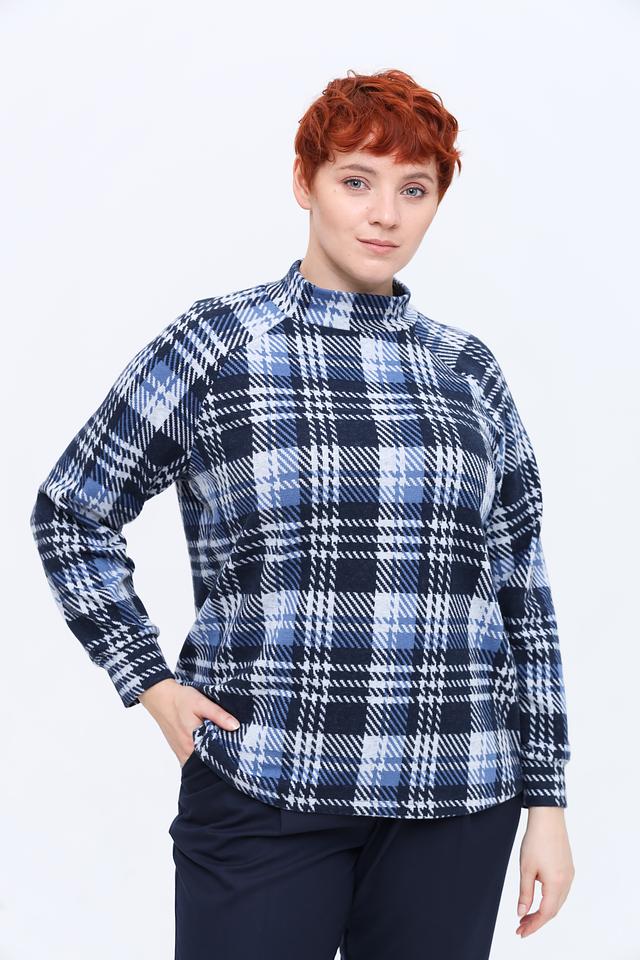 Женский пуловер Frank Walder синего цвета в классическую клетку. Модель выполнена из мягкого трикотажа с добавлением вискозы и эластана, что обеспечивает комфорт и хорошую посадку по фигуре. Состав: полиэстер 70%, вискоза 24%, эластан 6%