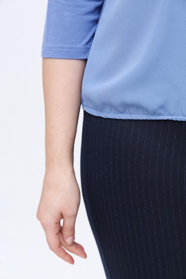 Состав ткани: 93% вискоза, 7% эластан. Эта комбинация материалов позволяет блузе хорошо держать форму, не мяться и легко драпироваться. Блуза идеально подойдет для работы, встреч или особых случаев.