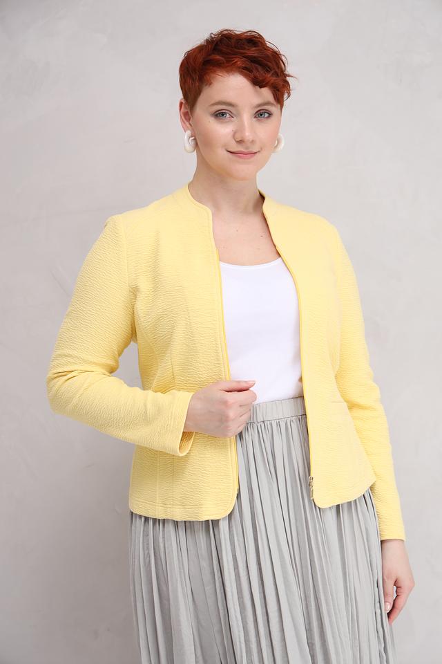 Жёлтый жакет Frank Walder из текстурированного хлопка станет ярким акцентом вашего образа. Классический крой и удобная застёжка-молния обеспечивают комфортную посадку и свободу движений. Состав: хлопок 97%, эластан 3%