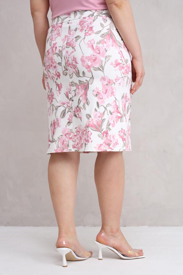 Юбка имеет классический крой – карандаш, длину до колена и застежку-молнию сзади. Особенностью модели является яркий цветочный принт, который придает ей романтичный и женственный вид. Небольшие боковые карманы добавляют функциональности.