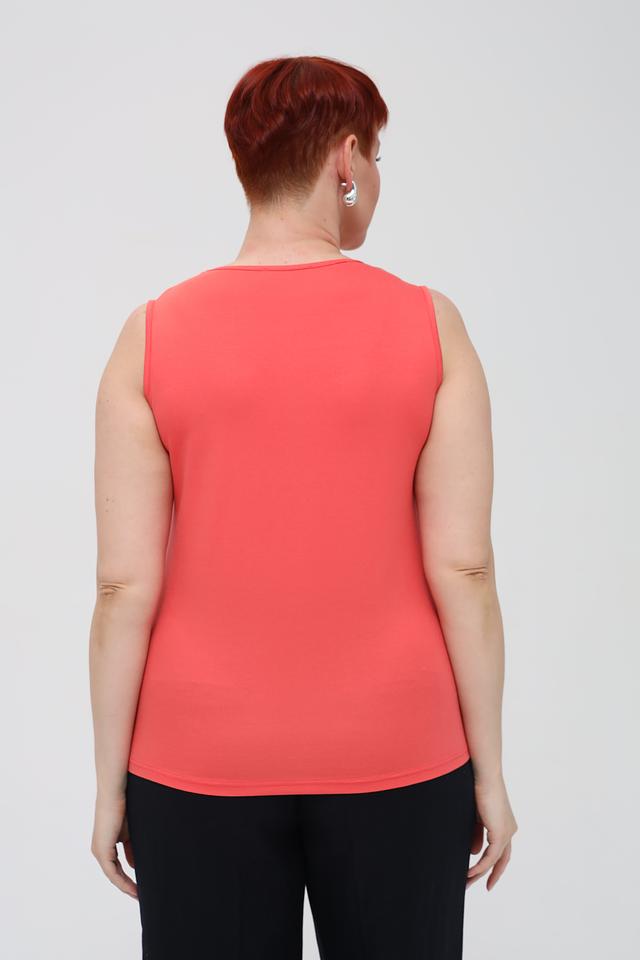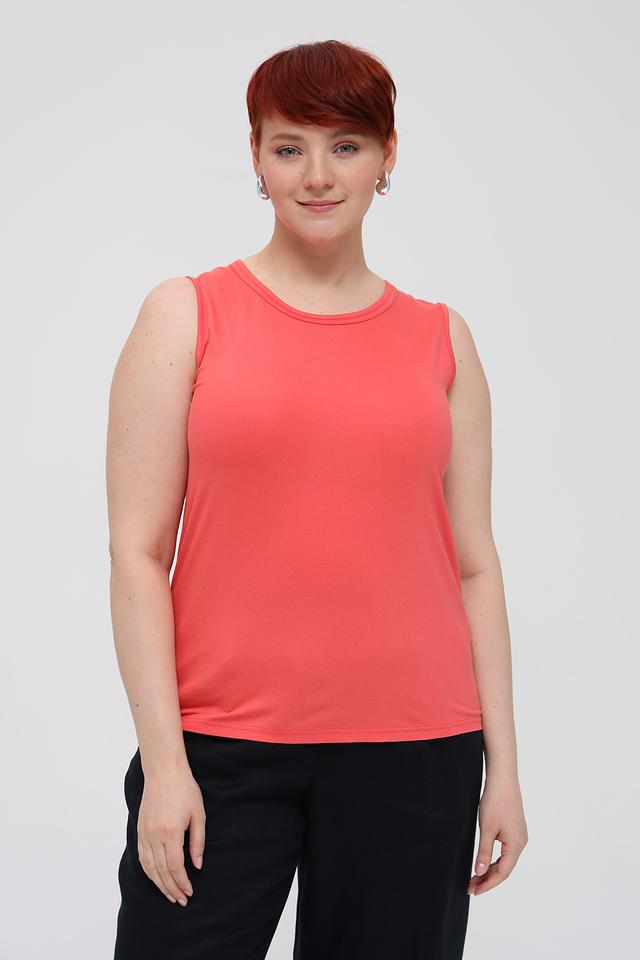 Топ Frank Walder кораллового цвета — это базовая модель без рукавов с круглым вырезом. Изготовлен из мягкой вискозы с добавлением эластана для комфорта и хорошей посадки по фигуре. Идеально подходит для создания повседневных образов. Состав: вискоза 93%, эластан 7%