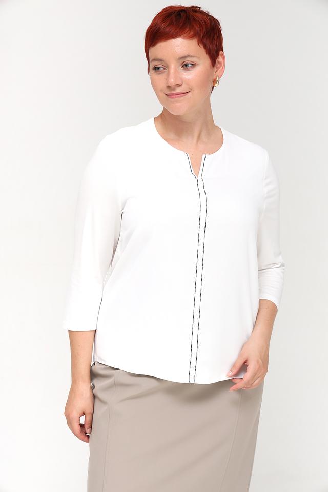 Блуза имеет прямой крой, который подчеркивает достоинства фигуры, не сковывая движений. Особенностью модели является деликатная вышивка вдоль планки, придающая ей изысканность и оригинальность.