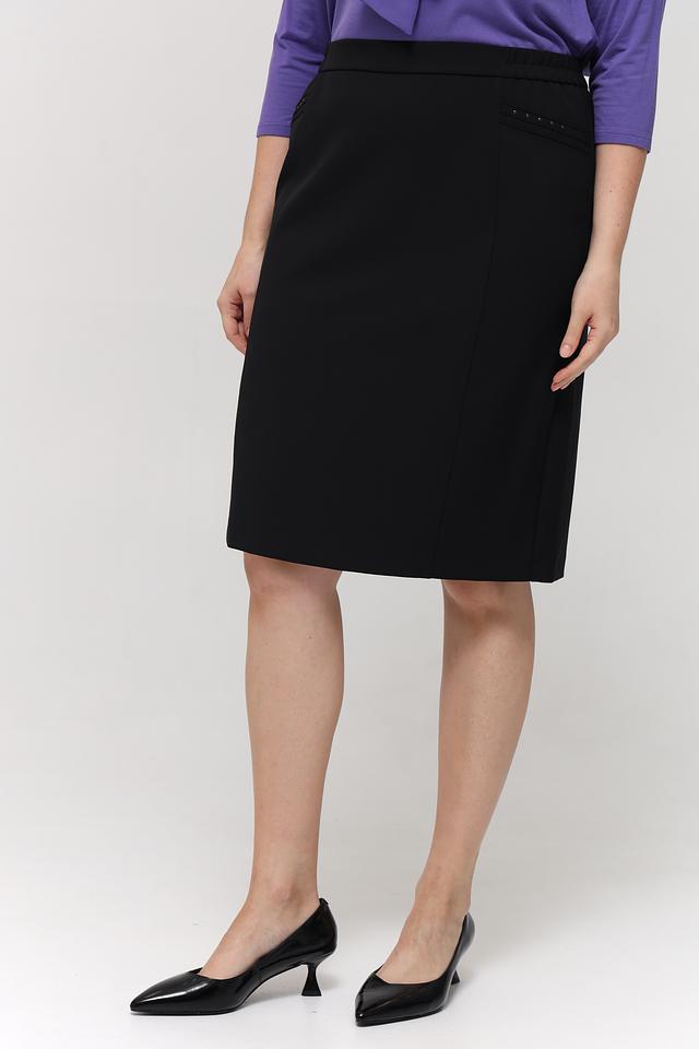 Декоративные элементы в виде небольших карманов на личной стороне юбки добавляют ей изысканности. Юбка имеет стандартную длину, подходящую для создания как деловых, так и повседневных образов. Благодаря эластану в составе, юбка хорошо тянется и не сковывает движений.