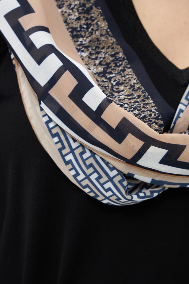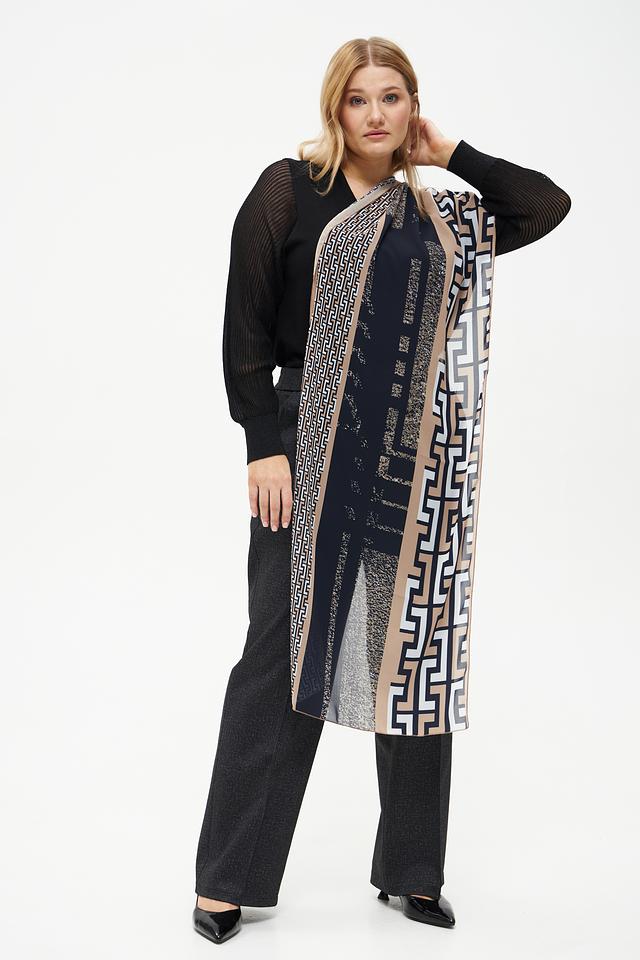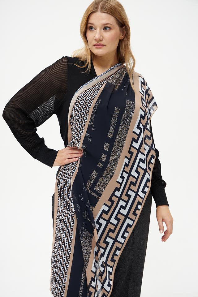 Этот шарф от Frank Walder – идеальный аксессуар для создания завершенного образа. Шарф выполнен в сочетании бежевого и тёмно-синего цветов с выразительным геометрическим принтом, который добавит изысканности вашему стилю.