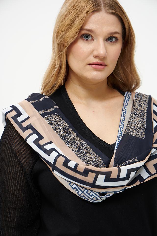 Шарф имеет прямоугольную форму и изготовлен из высококачественного полиэстера. Этот материал обеспечивает мягкость, лёгкость и долговечность изделия. Шарф приятен на ощупь и не требует особого ухода.
