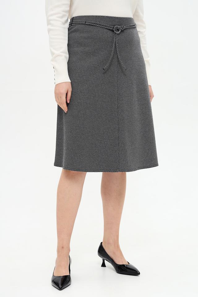 Эта юбка от Frank Walder станет отличным дополнением к вашему гардеробу. Модель выполнена в сером цвете с мелким геометрическим принтом, который придает ей изысканность.