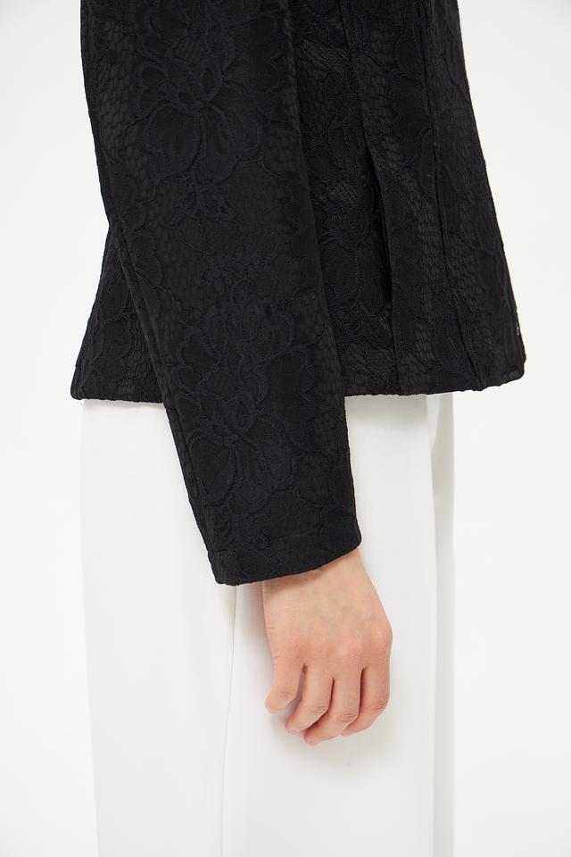 Этот элегантный жакет от Frank Walder выполнен в классическом крое и станет незаменимой вещью в вашем гардеробе. Жакет имеет чёрный цвет и украшен оригинальным узором, который придает ему особый шарм.