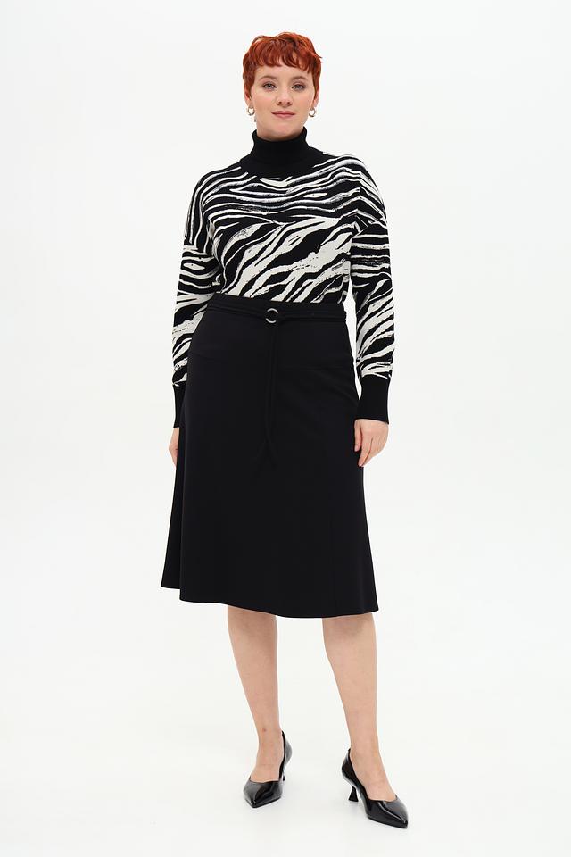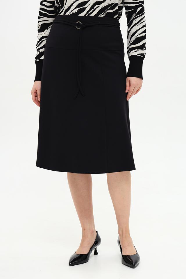 Юбка имеет длину миди и прямой крой, что делает её универсальной для создания как повседневных, так и более элегантных образов. Пояс с кулиской позволяет регулировать посадку по фигуре, обеспечивая комфорт и свободу движений.