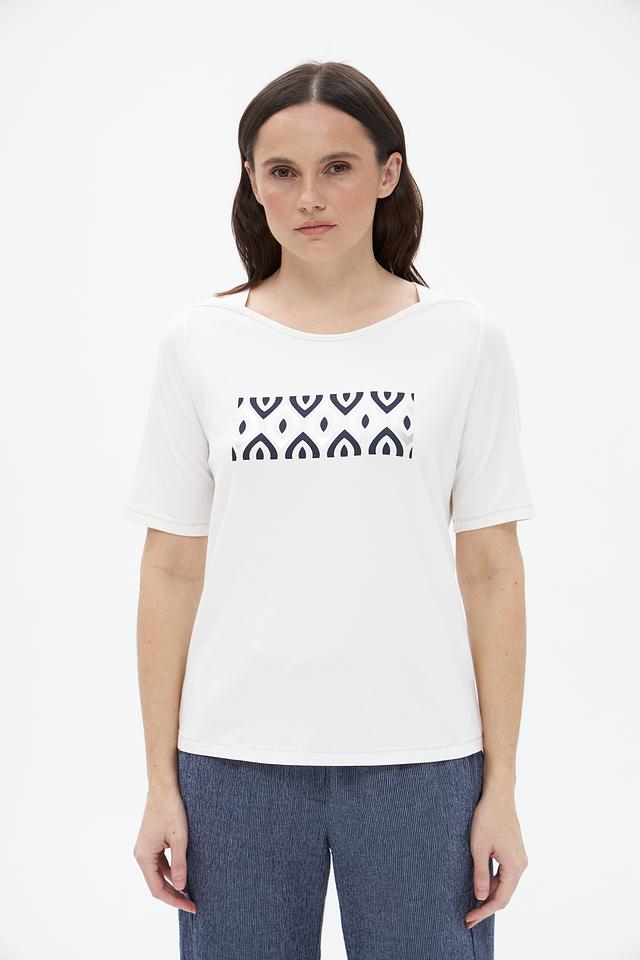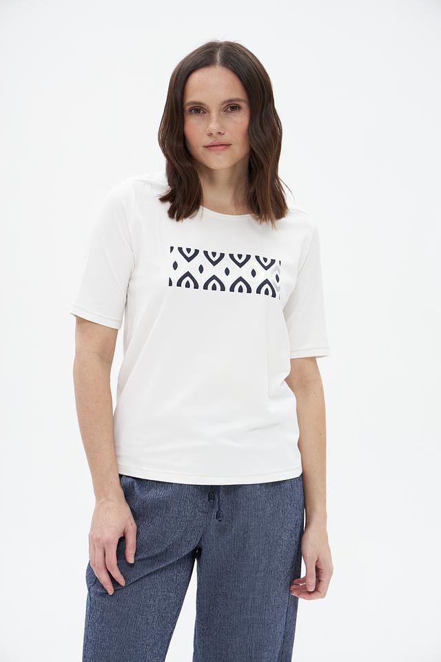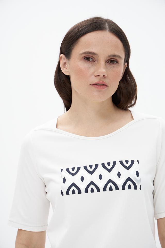 Белая футболка Frank Walder с оригинальным графичным принтом. Изготовлена из мягкого и приятного к телу сочетания хлопка и модала, обеспечивающего комфорт в носке. Стильный и лаконичный дизайн. Состав: хлопок 46%, модал 46%, эластан 8%