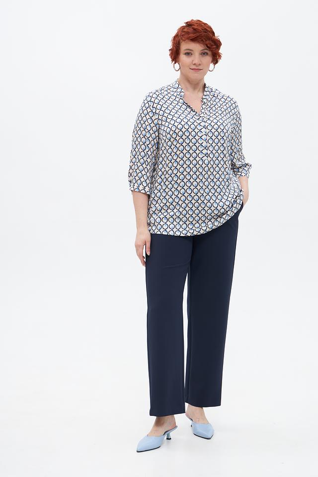 Брюки имеют прямой крой и высокую посадку, обеспечивающие идеальную посадку по фигуре и свободу движений. Изготовлены из высококачественного полиэстера с добавлением эластана, что обеспечивает износостойкость, приятные тактильные ощущения и небольшую эластичность.