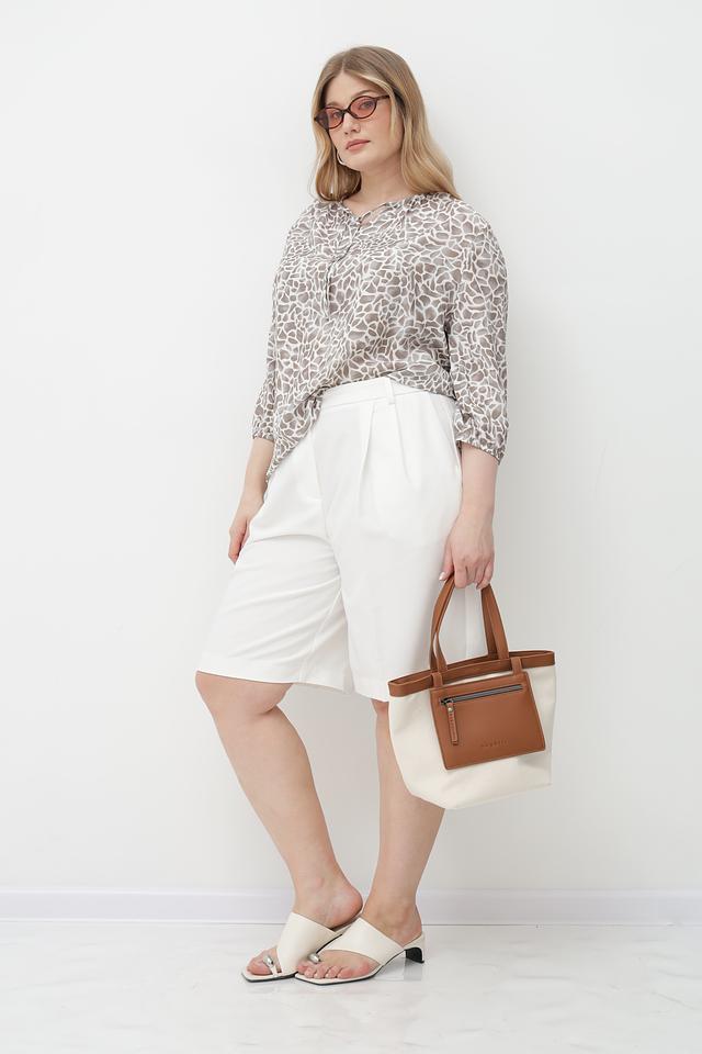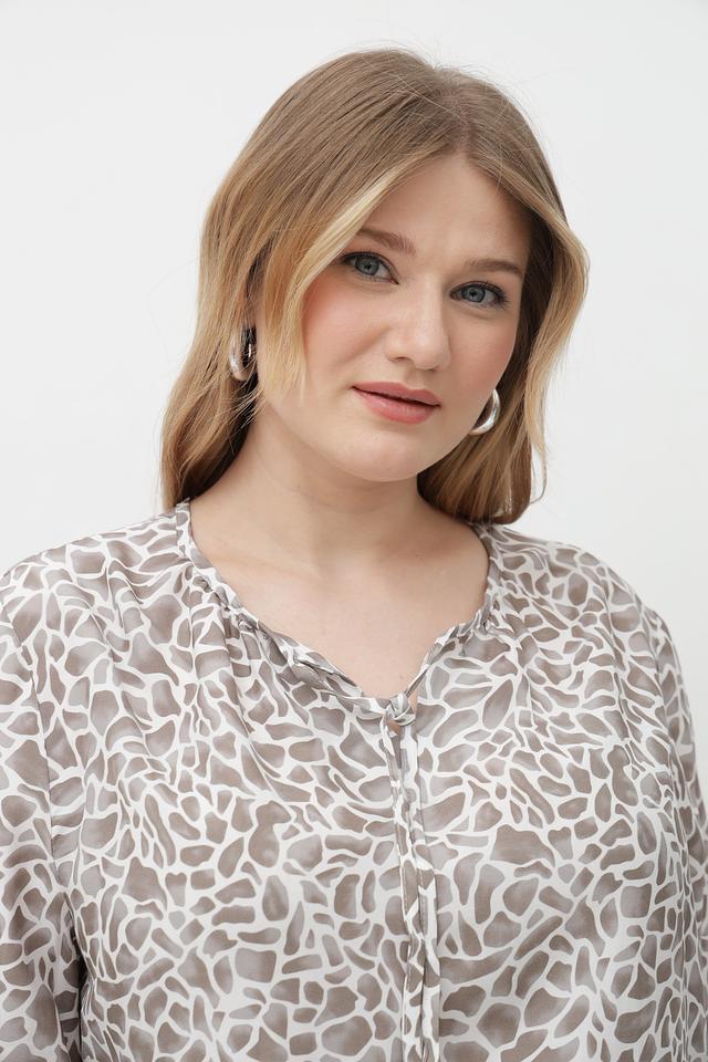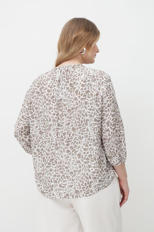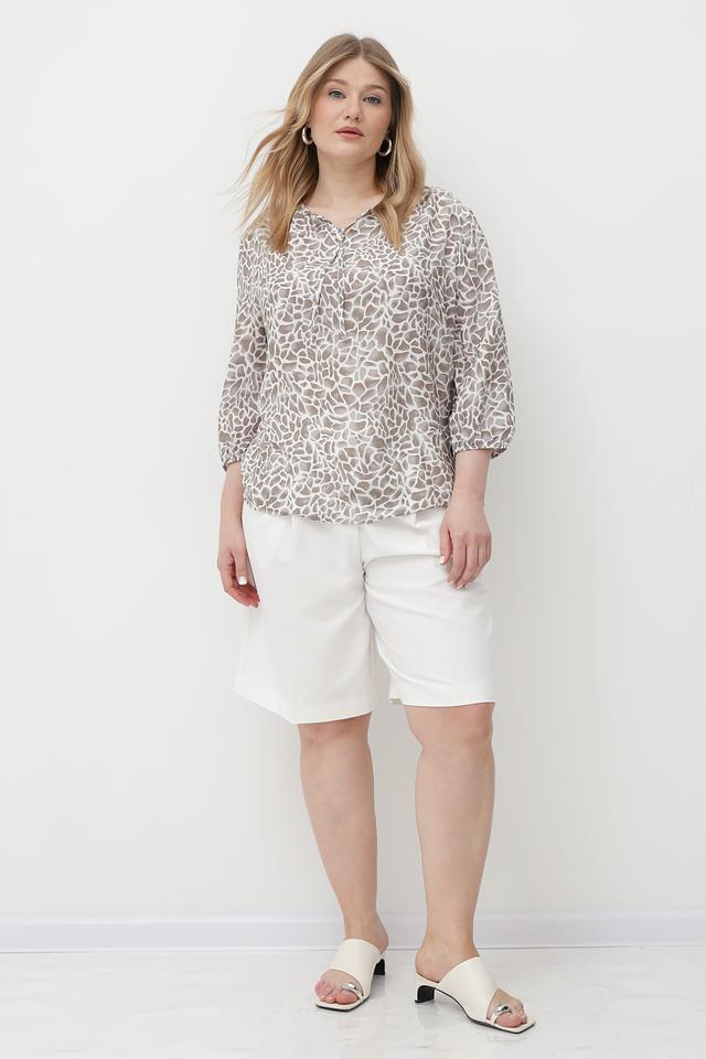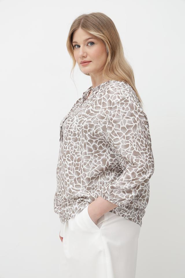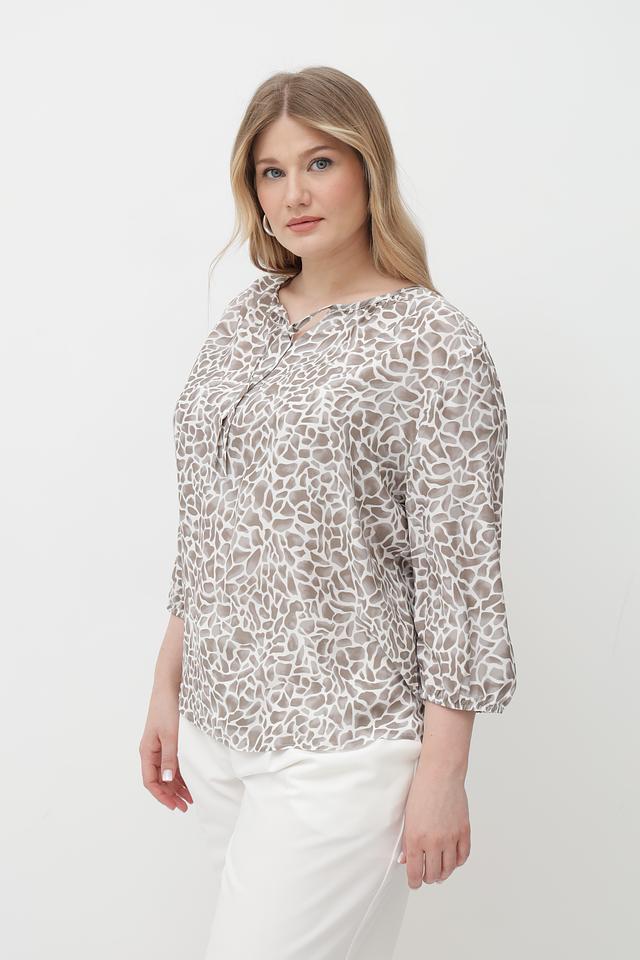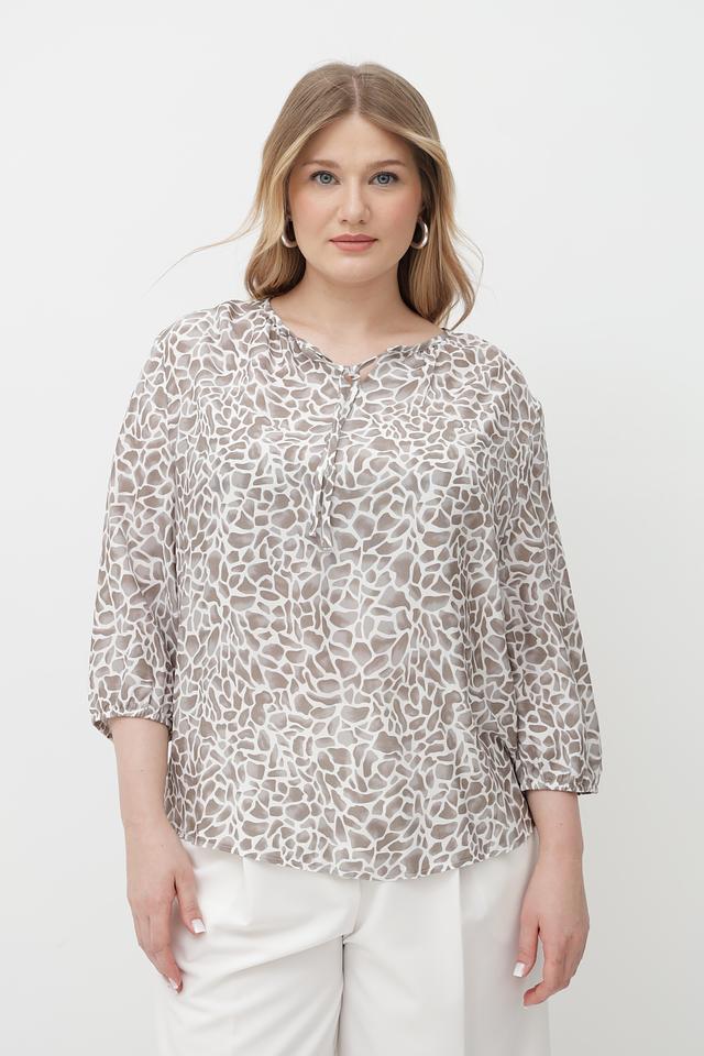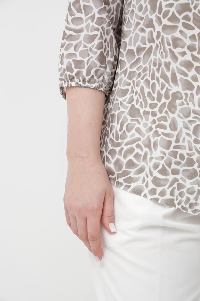 Особенность данной модели – стильный принт, сочетающий в себе оттенки бежевого, кремового и коричневого. Блузка идеально подойдет для создания как повседневных, так и более элегантных образов.