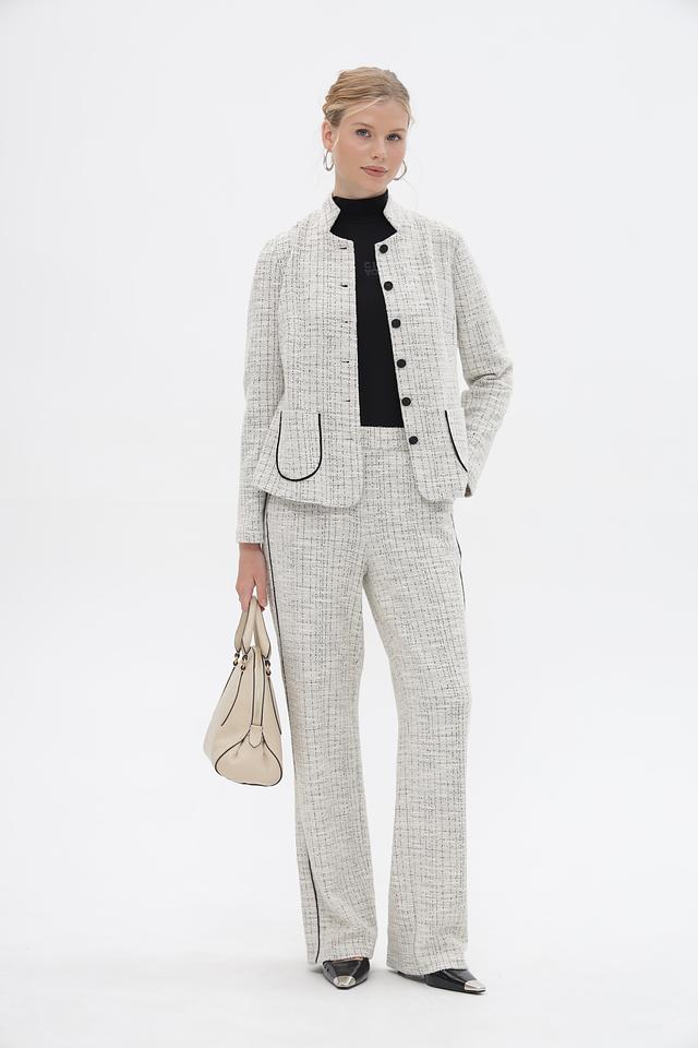 Представляем стильные женские брюки от бренда Frank Walder. Модель выполнена в бежевом цвете и украшена классическим клетчатым узором.