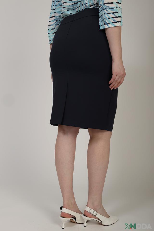Юбка имеет прямую форму и длину до колена, что делает её идеальным выбором для офиса или деловых встреч. Эластичный пояс обеспечивает комфортную посадку по фигуре, а подкладка из полиэстера добавляет дополнительный комфорт при носке.