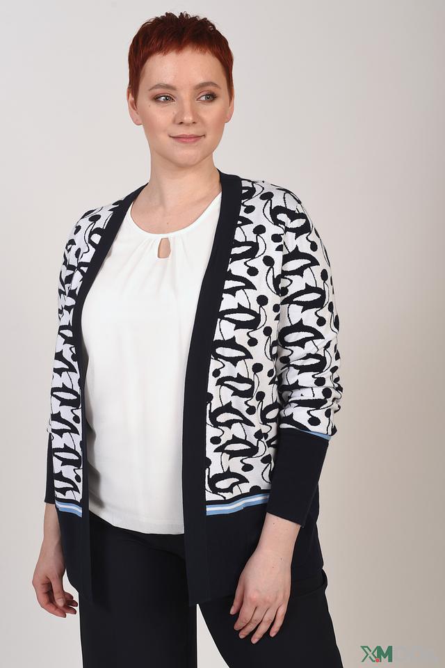 Жакет Frank Walder чёрно-белого цвета с оригинальным принтом станет стильным дополнением к вашему гардеробу. Модель выполнена из мягкой вискозы с добавлением полиэстера, что обеспечивает комфорт и удобство в носке. Состав: вискоза 78%, полиэстер 22%