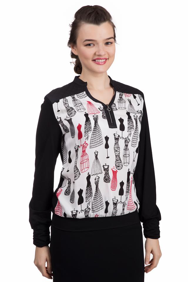 Блузa Frank Walder. Эта превосходная модель снабжена застежкой-молнией вверху лифа и невысоким воротником-стойкой. Внизу блуза собрана на резинку. Чудесный фантазийный рисунок оживляет перед модели. Яркая деталь модели: присборенные манжеты. Состав ткани: вискоза плюс эластан. Блуза замечательно комбинируется с самой разной одеждой.
