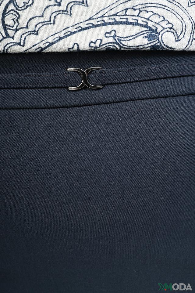 Тёмно-синий цвет юбки универсален и легко сочетается с другими цветами в вашем гардеробе. Декоративная металлическая планка с логотипом бренда на поясе добавляет юбке изысканности и стиля. Юбка идеально подойдет для офиса, деловых встреч или особых случаев.