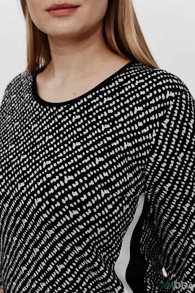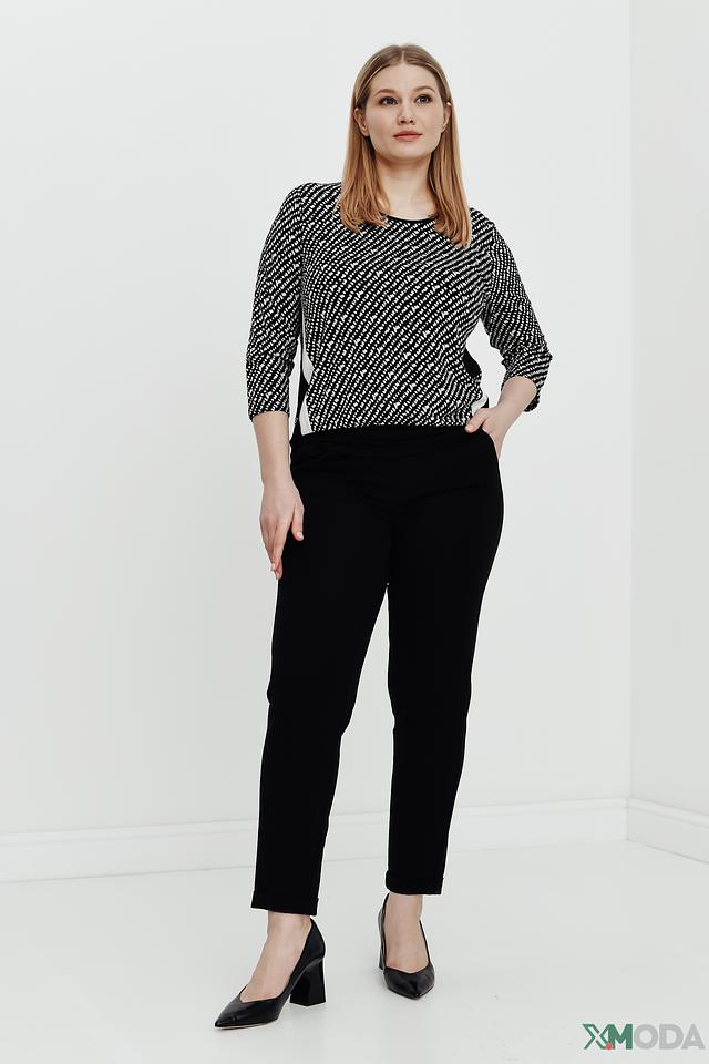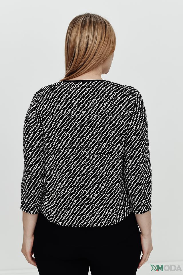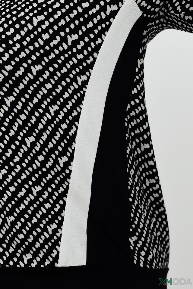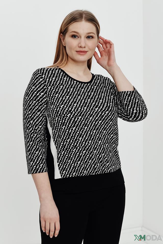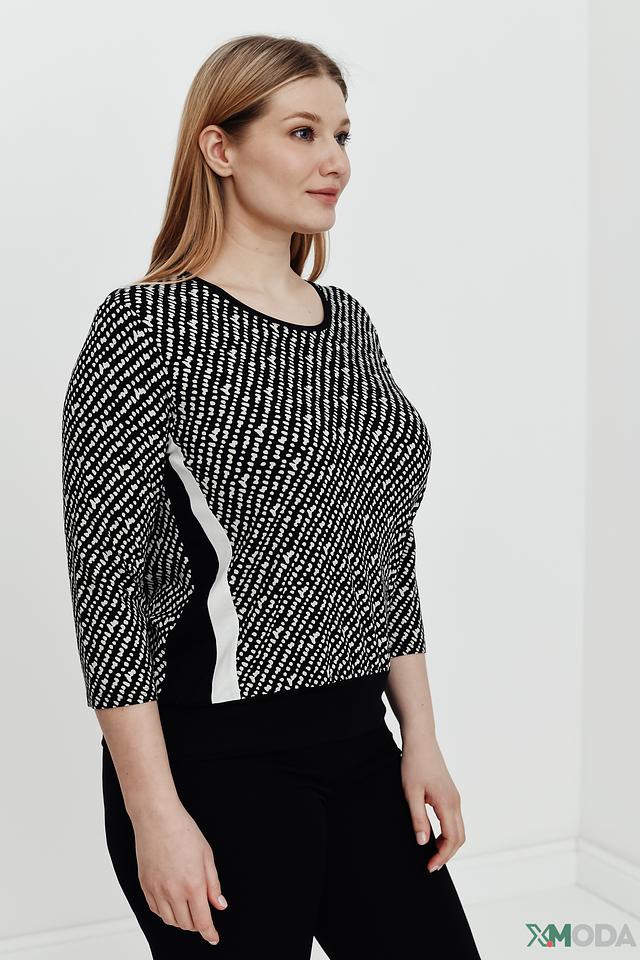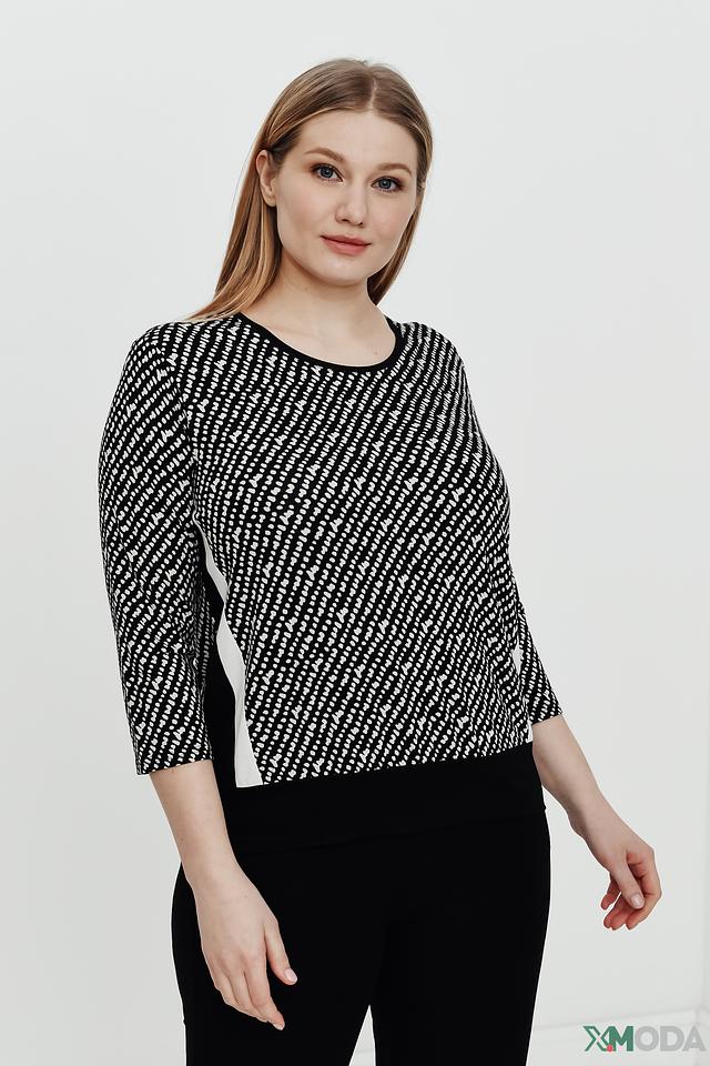 Женский джемпер Frank Walder чёрно-белого цвета с оригинальным геометрическим принтом. Модель выполнена из мягкой вискозы с добавлением эластана, обеспечивающего комфортную посадку. Прекрасно сочетается с брюками и юбками. Состав: вискоза 96%, эластан 4%