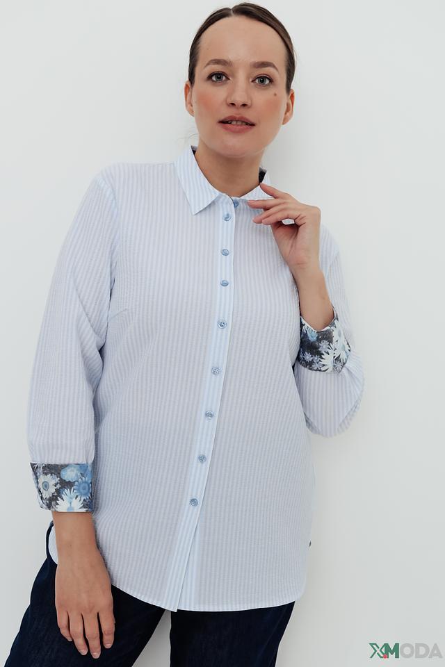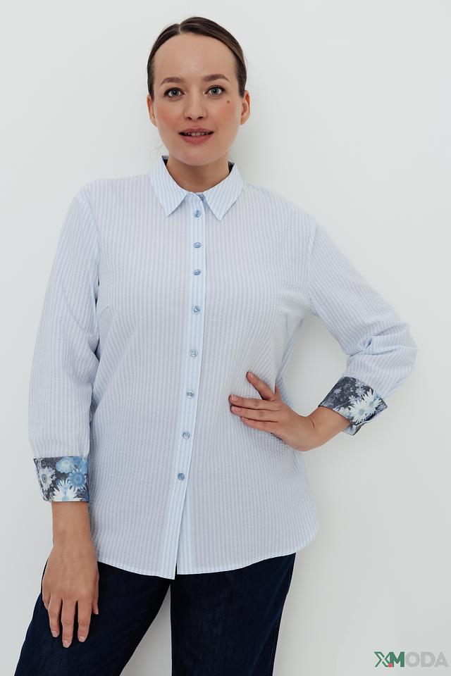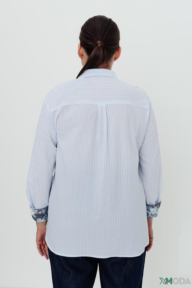 Женская рубашка Frank Walder голубого цвета в полоску с оригинальным цветочным принтом на рукавах. Изготовлена из хлопка с добавлением эластана для комфорта и свободы движений. Состав: хлопок 99%, эластан 1%
