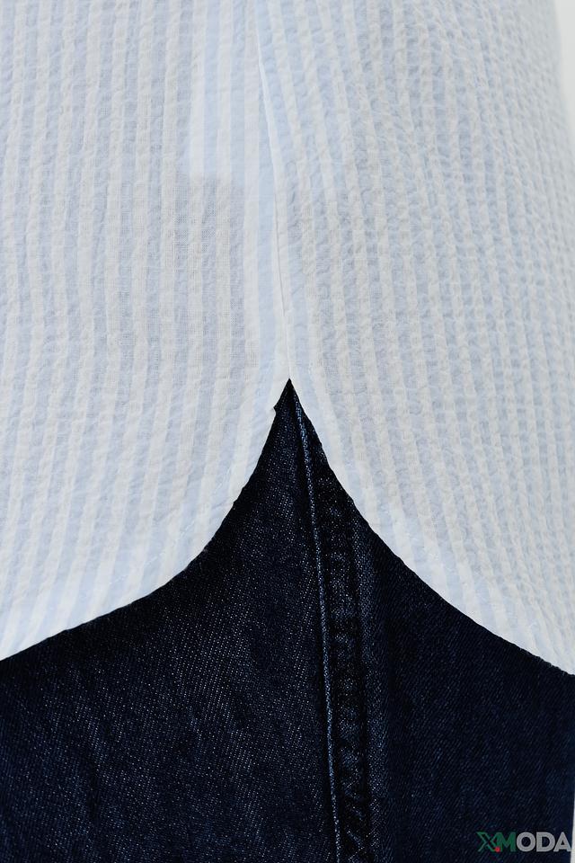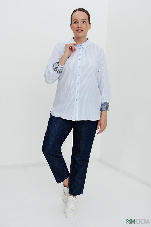 Особенностью данной модели является сочетание полосатого рисунка и цветочного принта на манжетах рукавов. Такой дизайн добавляет образу оригинальности и свежести. Рубашка идеально подойдет для создания как повседневных, так и более нарядных образов.