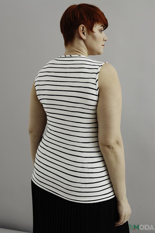 Модель без рукавов с округлым вырезом горловины. Подходит для создания повседневных и более нарядных образов. Этот топ станет незаменимой вещью в вашем гардеробе, позволяя создавать разнообразные стильные комбинации.