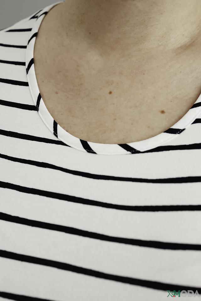Топ имеет прямой крой и удобную посадку благодаря составу ткани: 96% вискоза и 4% эластан. Вискоза обеспечивает мягкость и приятные ощущения на коже, а эластан – небольшую эластичность, что позволяет топу хорошо держать форму и не сковывать движения.