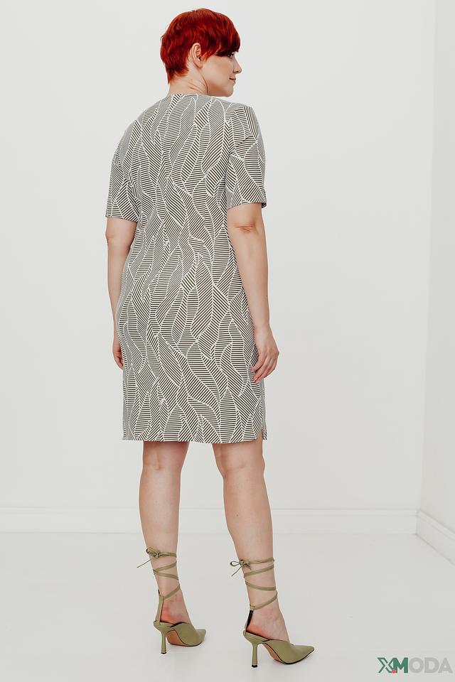Модель с короткими рукавами и округлым вырезом горловины. Небольшой вырез в форме капли на груди добавляет платью изысканности. Платье изготовлено из смеси вискозы, полиэстера и эластана, что обеспечивает комфорт при носке и хорошую посадку по фигуре.