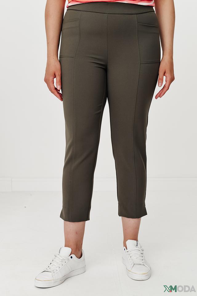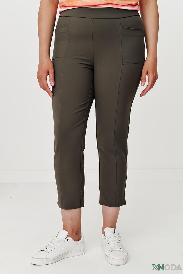 Брюки имеют зауженный крой, который визуально стройнит фигуру и подчеркивает ее достоинства. Модель дополнена боковыми карманами и эластичным поясом для максимального комфорта.