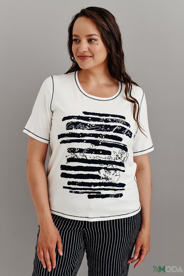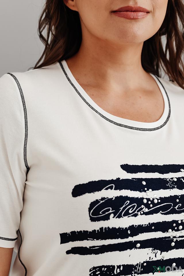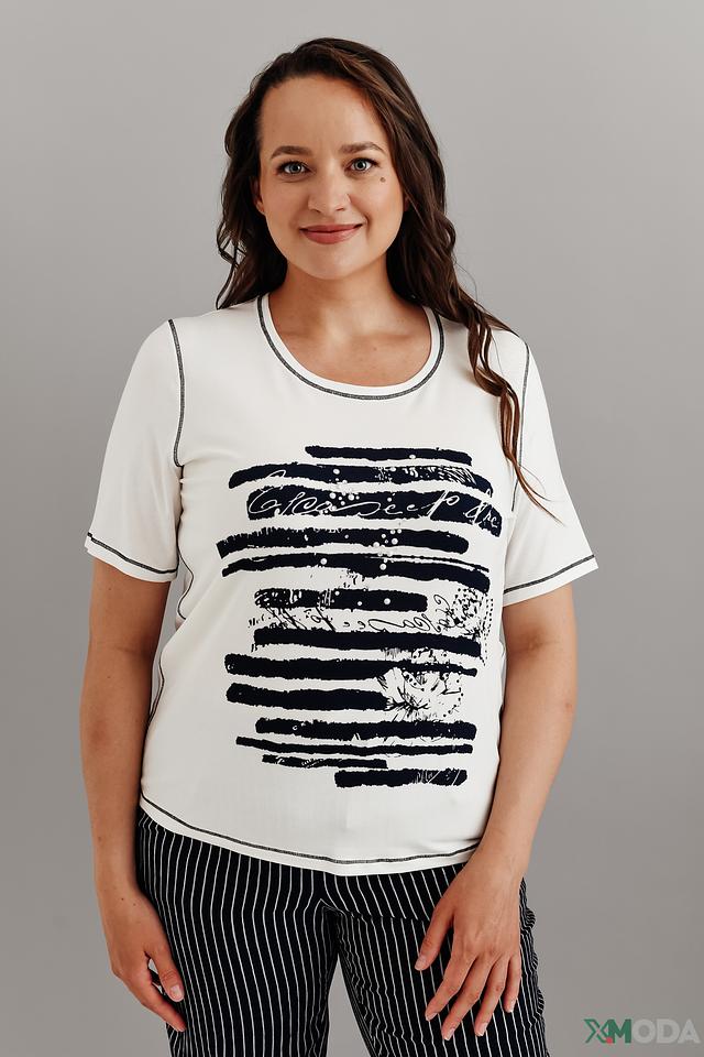 Модель имеет прямой крой и короткие рукава, что обеспечивает комфорт в жаркую погоду. Футболка изготовлена из высококачественной вискозы с добавлением эластана, благодаря чему она приятна к телу, хорошо драпируется и не мнется.