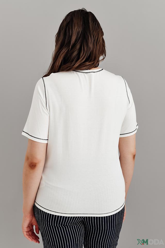 Состав ткани: 93% вискоза, 7% эластан. Эта комбинация материалов обеспечивает мягкость, эластичность и долговечность изделия. Футболка идеально подходит для создания повседневных образов, ее можно сочетать с джинсами, брюками или юбками.