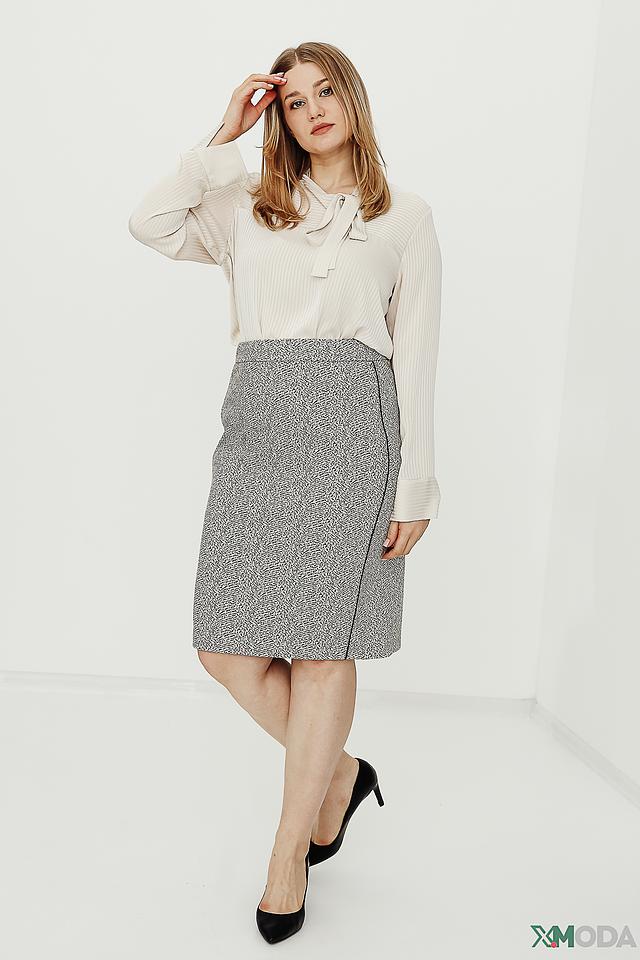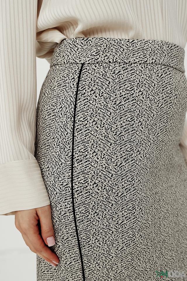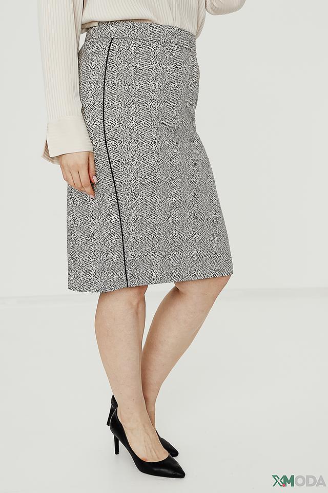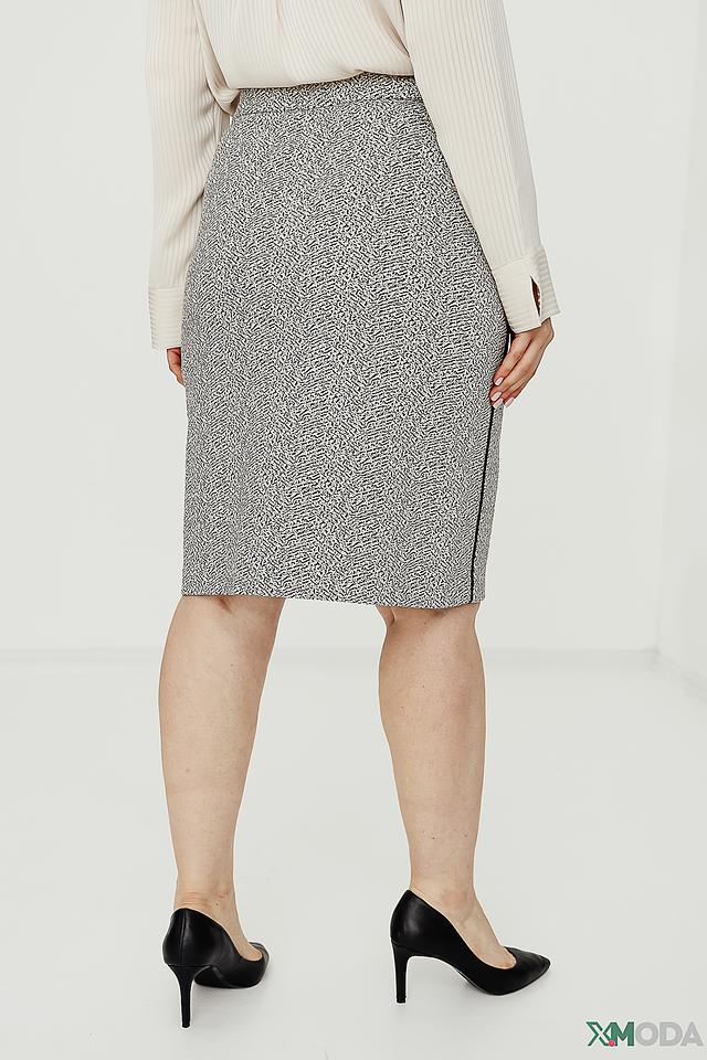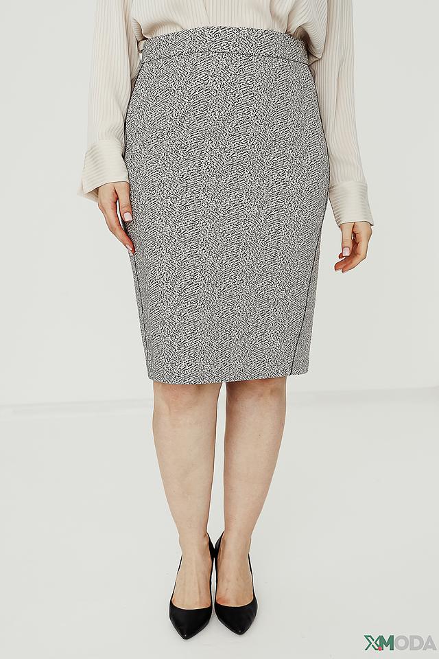 Юбка имеет прямой крой и длину до колена, что делает ее универсальной для различных типов фигур. Ткань, состоящая из полиэстера, хлопка, вискозы и эластана, обеспечивает комфорт при носке и сохраняет форму изделия.