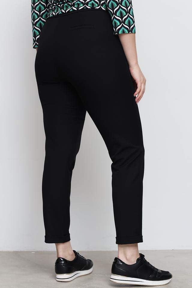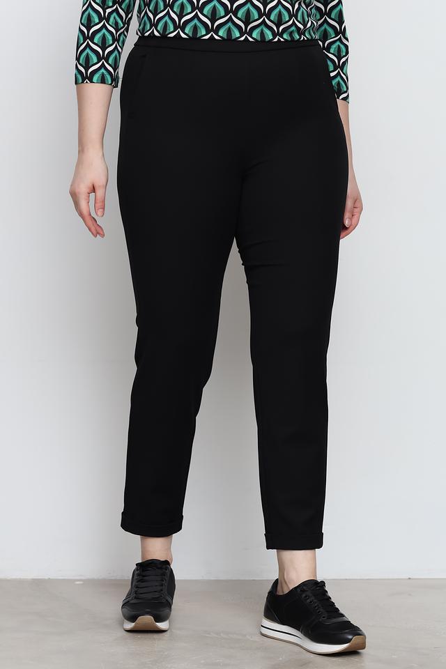 Брюки имеют прямой крой и стандартную посадку по фигуре. Эластичный пояс обеспечивает комфортную посадку и свободу движений. Ткань, состоящая из полиэстера, вискозы и эластана, приятна на ощупь и хорошо держит форму.