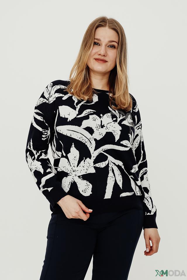 Женский пуловер Frank Walder черного цвета с оригинальным белым цветочным принтом станет стильным дополнением к вашему гардеробу. Модель выполнена из мягкого и приятного к телу сочетания хлопка и полиакрила, обеспечивая комфорт в носке. Состав: хлопок 50%, полиакрил 50%