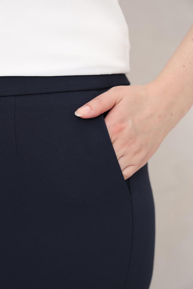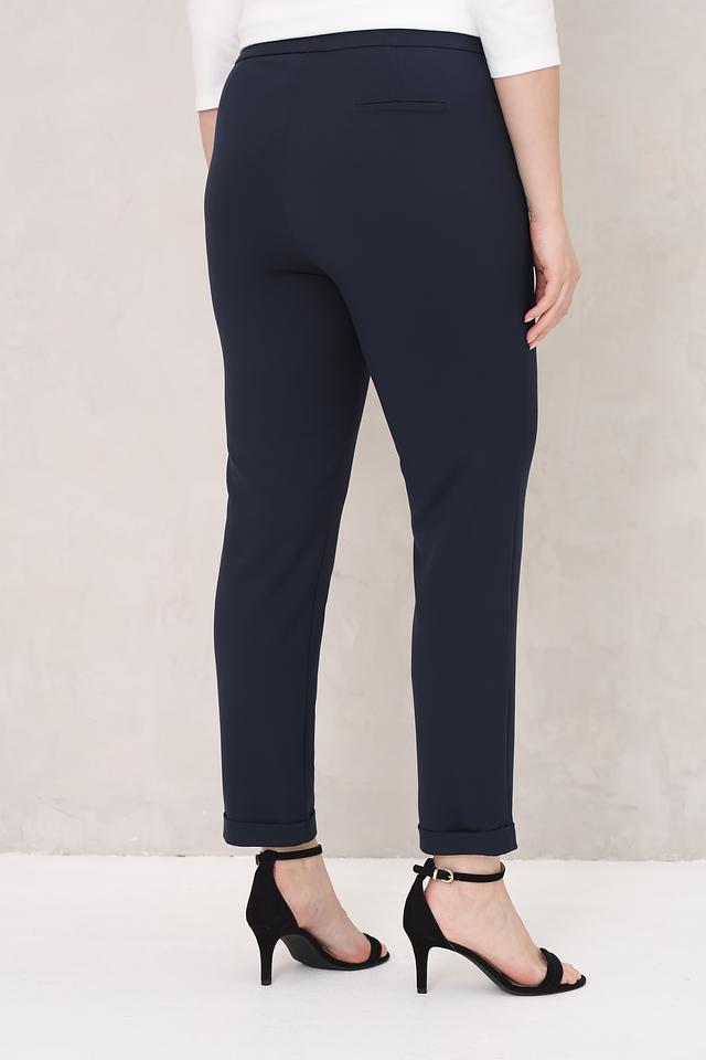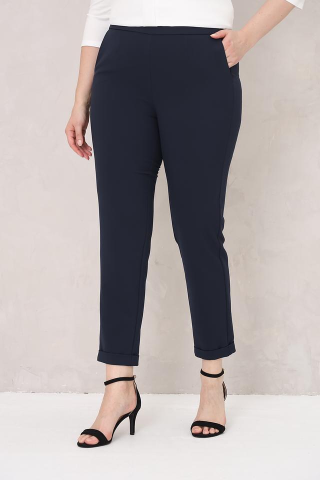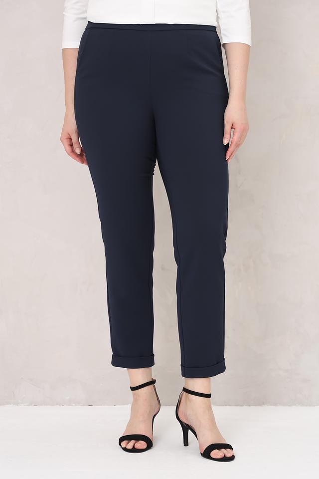 Цвет брюк – насыщенный темно-синий, который легко сочетается с различными элементами одежды. Модель дополнена функциональными боковыми карманами и аккуратным поясом. Завершающим штрихом является небольшой подворот на штанинах, придающий образу непринужденность.
