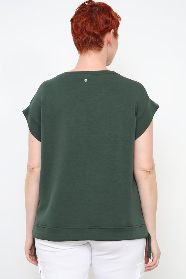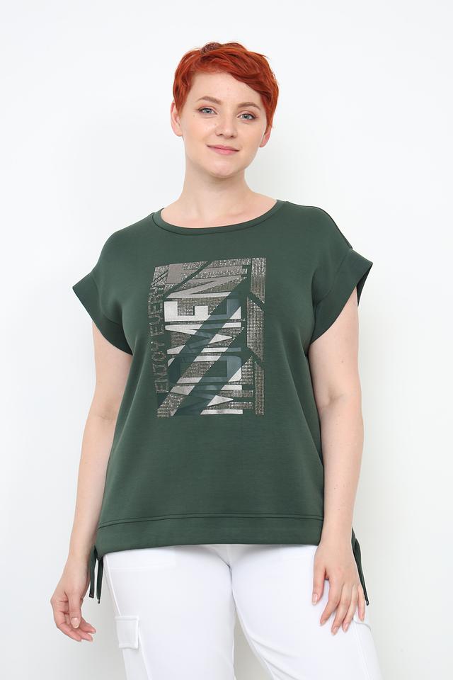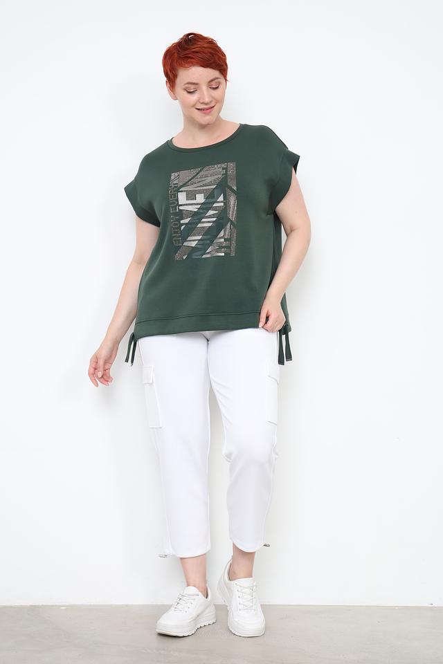 Зелёная футболка Frapp с оригинальным принтом и рукавами-крылышками станет отличным дополнением к вашему образу. Модель выполнена из мягкой и приятной к телу ткани, обеспечивающей комфорт в течение дня. Состав: вискоза 49%, полиэстер 43%, эластан 8%