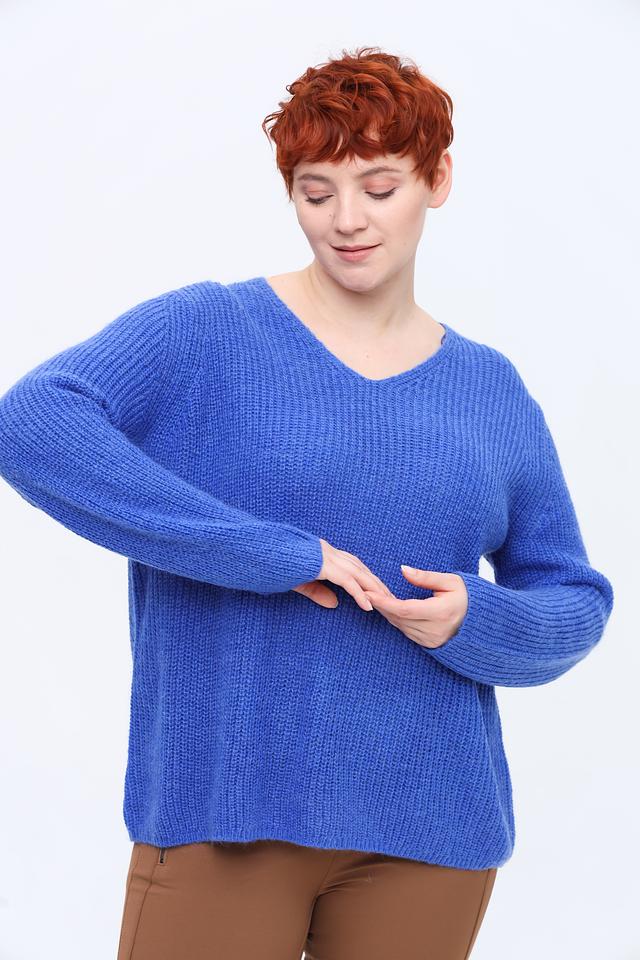 Синий пуловер Frapp с V-образным вырезом – это стильная и комфортная модель на каждый день. Изготовлен из мягкого трикотажа с добавлением мохера, что придает ему приятную текстуру и лёгкий объём. Состав: полиакрил 55%, полиамид 30%, мохер 15%