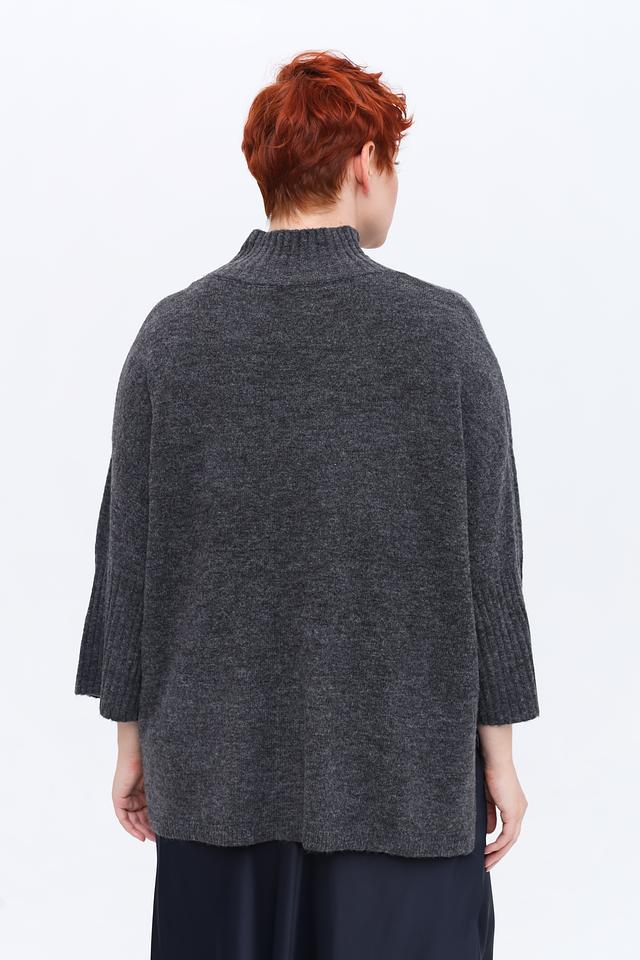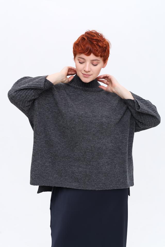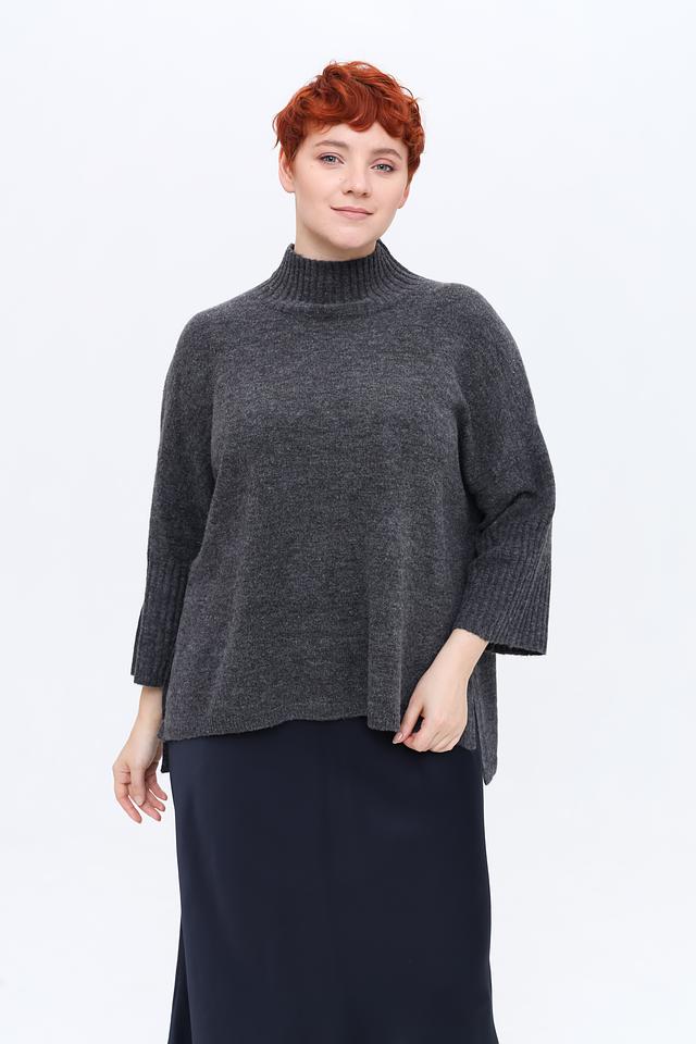 Пуловер имеет свободный, слегка заниженный крой, что обеспечивает комфорт в носке и позволяет создавать различные образы. Рукава 3/4 с вязаным манжетом добавляют изысканности. Асимметричный подол придает модели оригинальность.