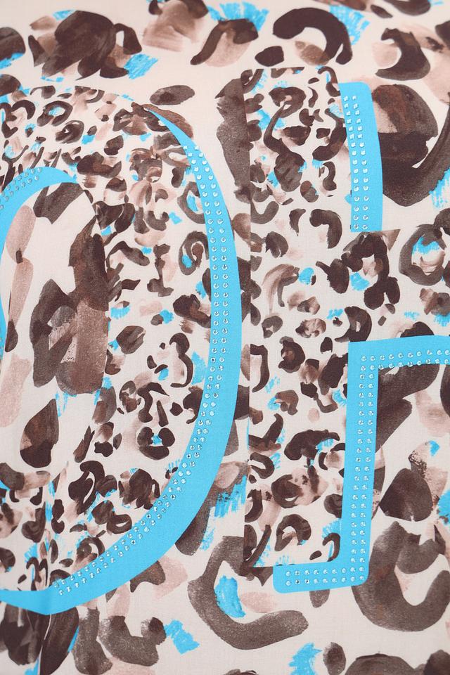 Эта стильная футболка от Frapp станет отличным дополнением к вашему гардеробу. Футболка выполнена в бежевых тонах с эффектным леопардовым принтом, который разбавлен яркими бирюзовыми элементами.