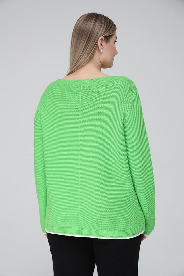Женский пуловер Frapp лаймового цвета с округлым вырезом и белой отделкой по горловине и низу. Изготовлен из мягкого хлопка, обеспечивающего комфорт в носке. Стильный и удобный выбор для повседневного гардероба. Состав: хлопок 100%