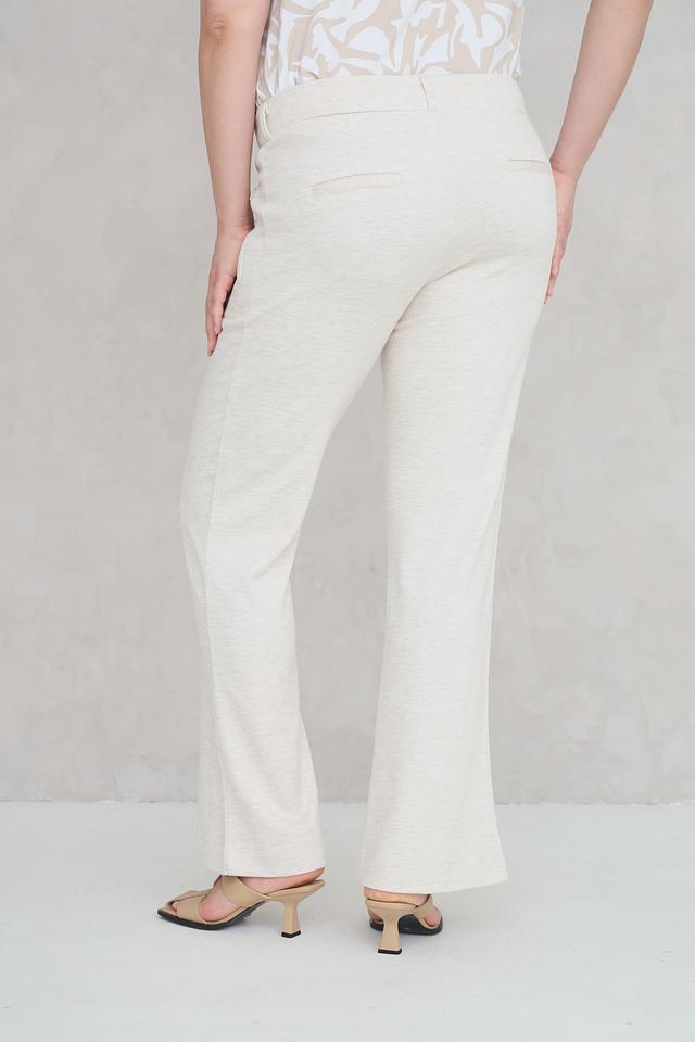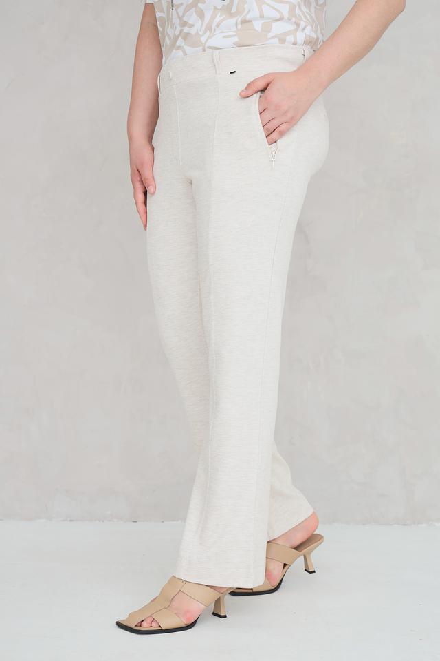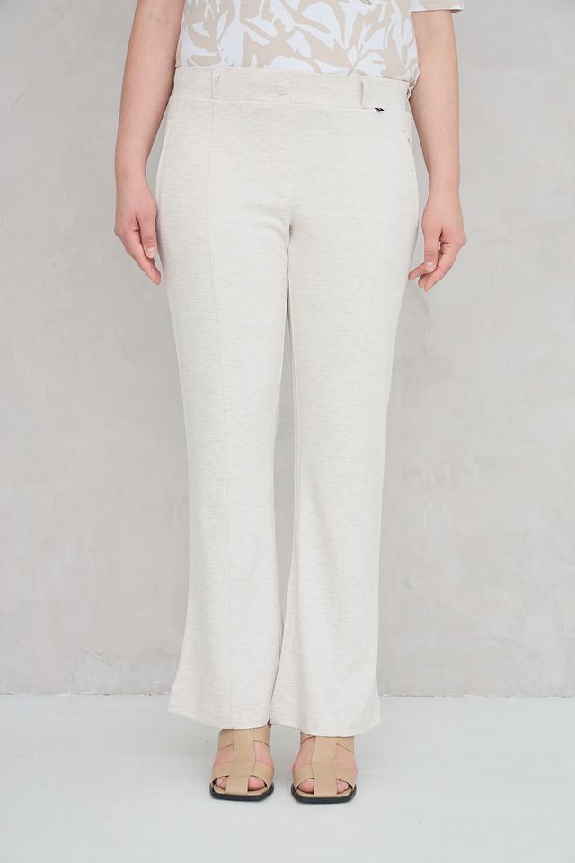 Представляем элегантные брюки от бренда Frapp. Эта модель выполнена в нежном бежевом цвете и имеет клёш от колена, что придает образу женственность и легкость.