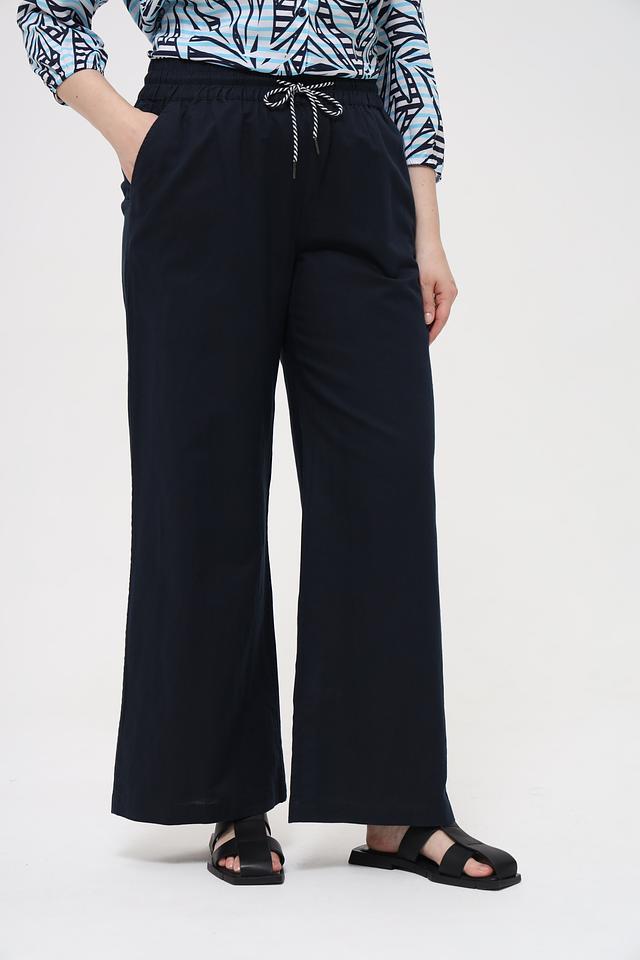 Темно-синие брюки палаццо от Frapp – это стильное и комфортное решение для создания элегантного образа. Модель выполнена из натурального смесового материала, обеспечивающего приятные тактильные ощущения и воздухопроницаемость. Удобный пояс на резинке с декоративным шнурком. Состав: лен 55%, хлопок 45%