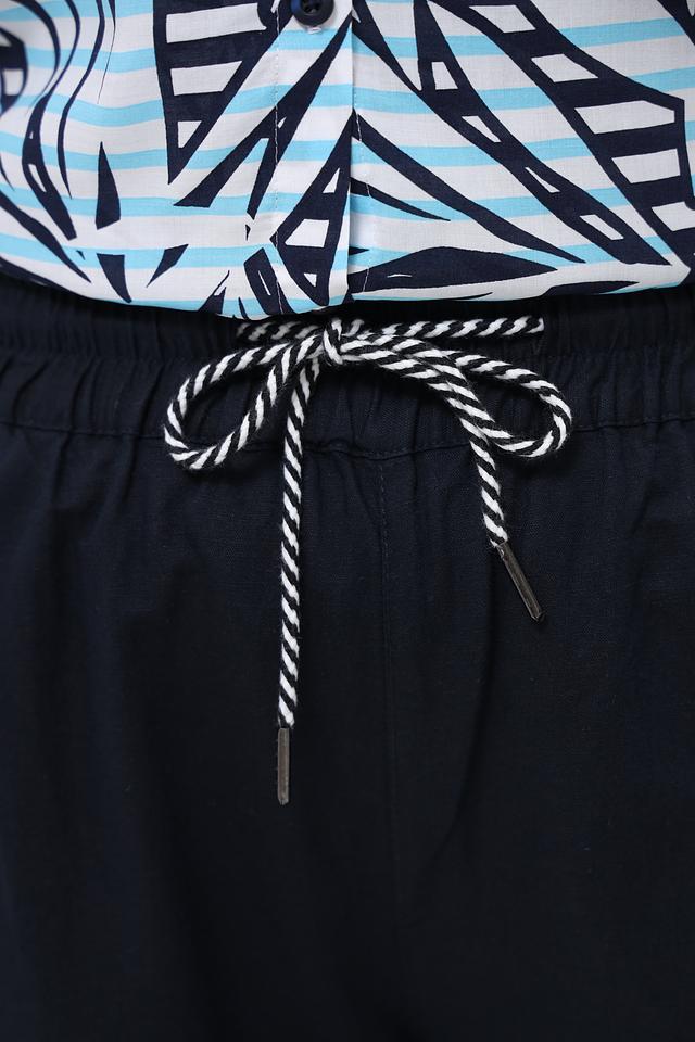 Брюки имеют свободный крой, который обеспечивает комфорт и свободу движений. Пояс на резинке дополнен декоративным шнурком, который позволяет регулировать посадку и добавляет образу оригинальности.