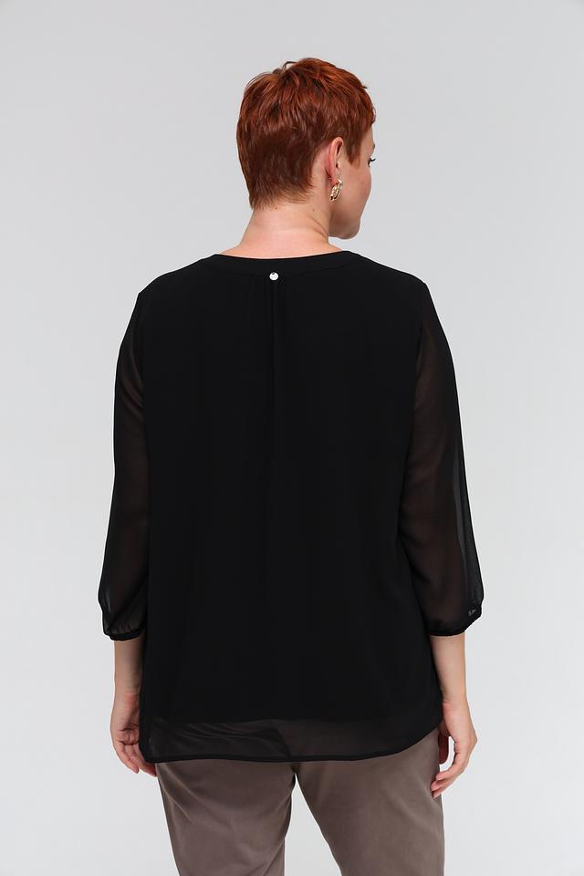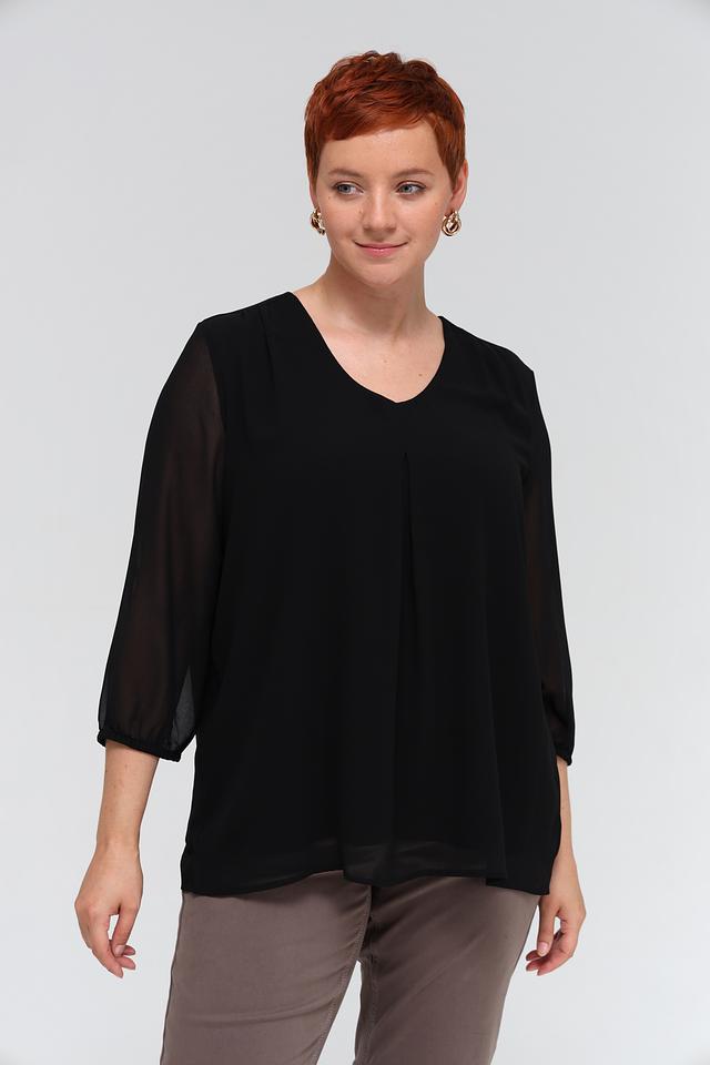 Чёрная блуза Frapp с рукавами-фонариками – элегантный выбор для создания женственного образа. Модель выполнена из лёгкой, полупрозрачной ткани и имеет V-образный вырез горловины. Состав: полиэстер 100%