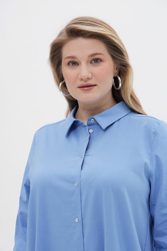 Платье-рубашка от бренда Frapp выполнено из легкой ткани, сочетающей в себе хлопок, полиэстер и эластан.